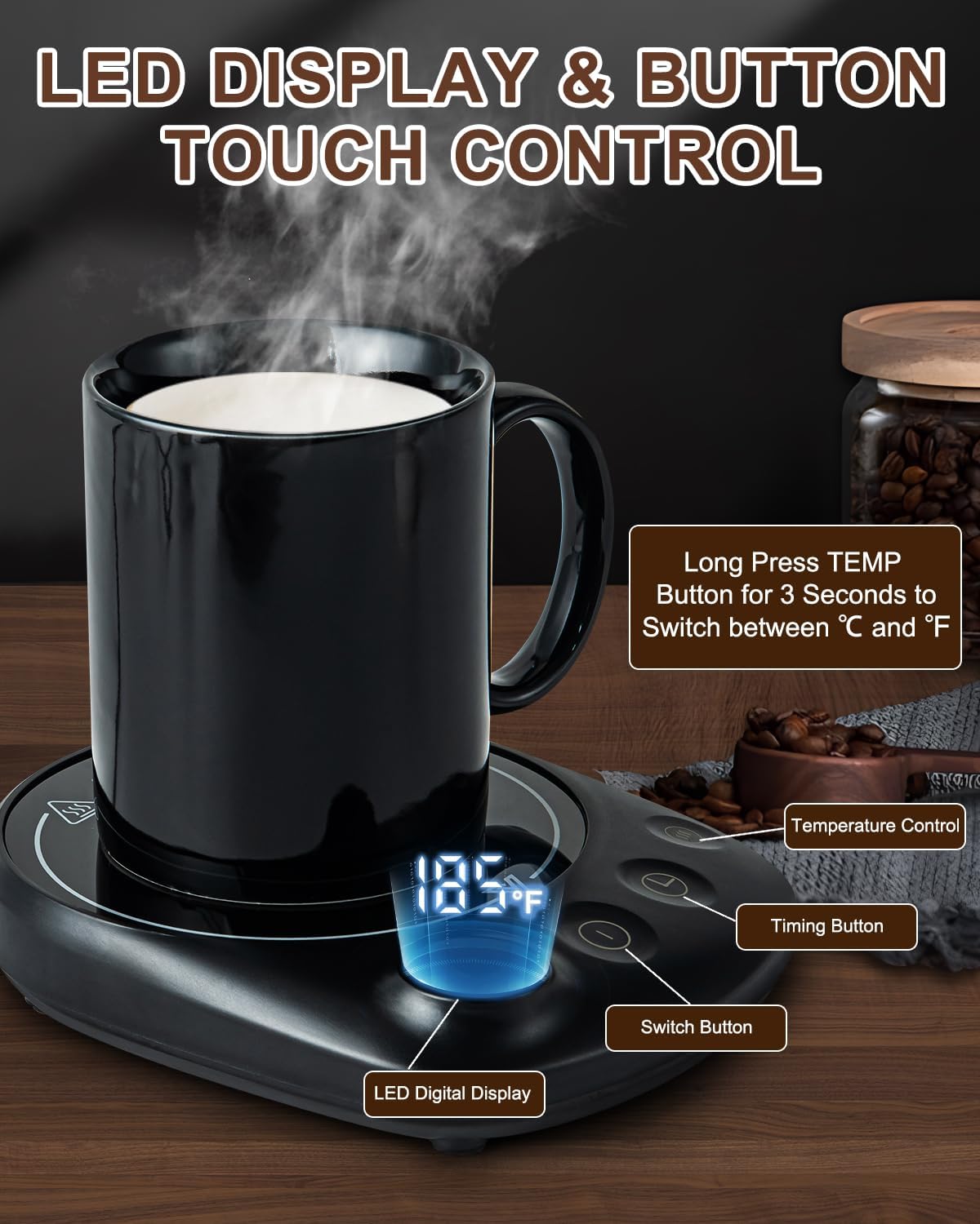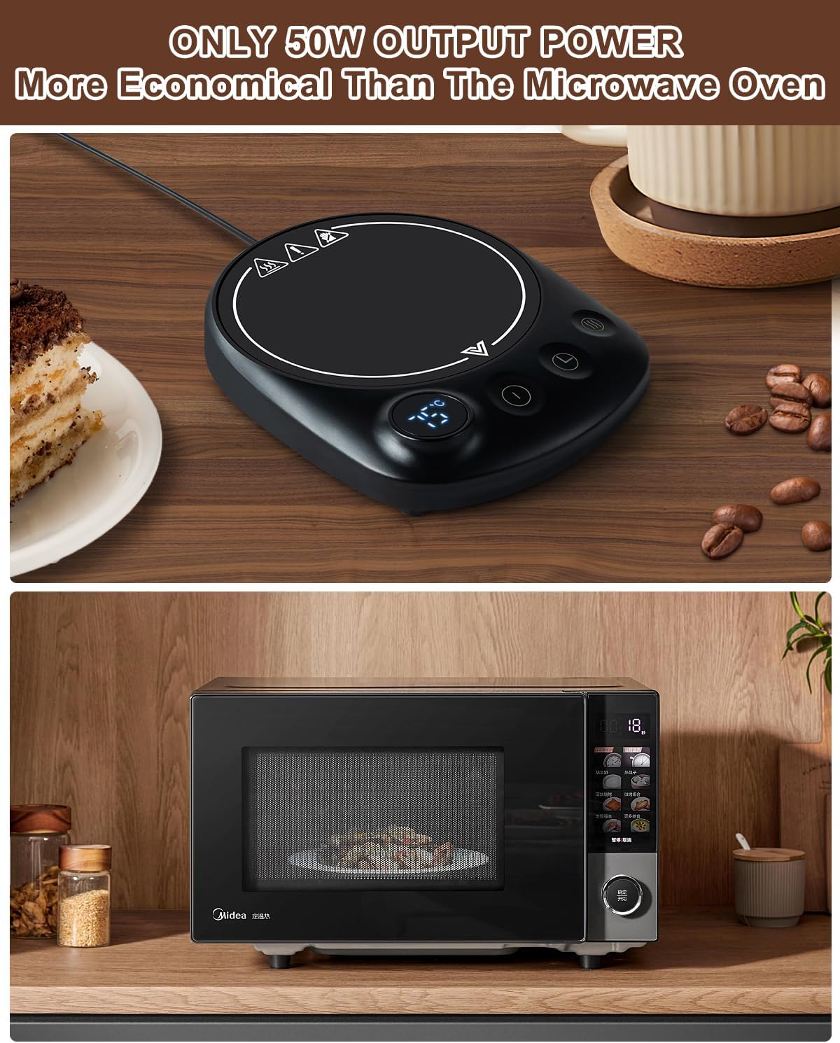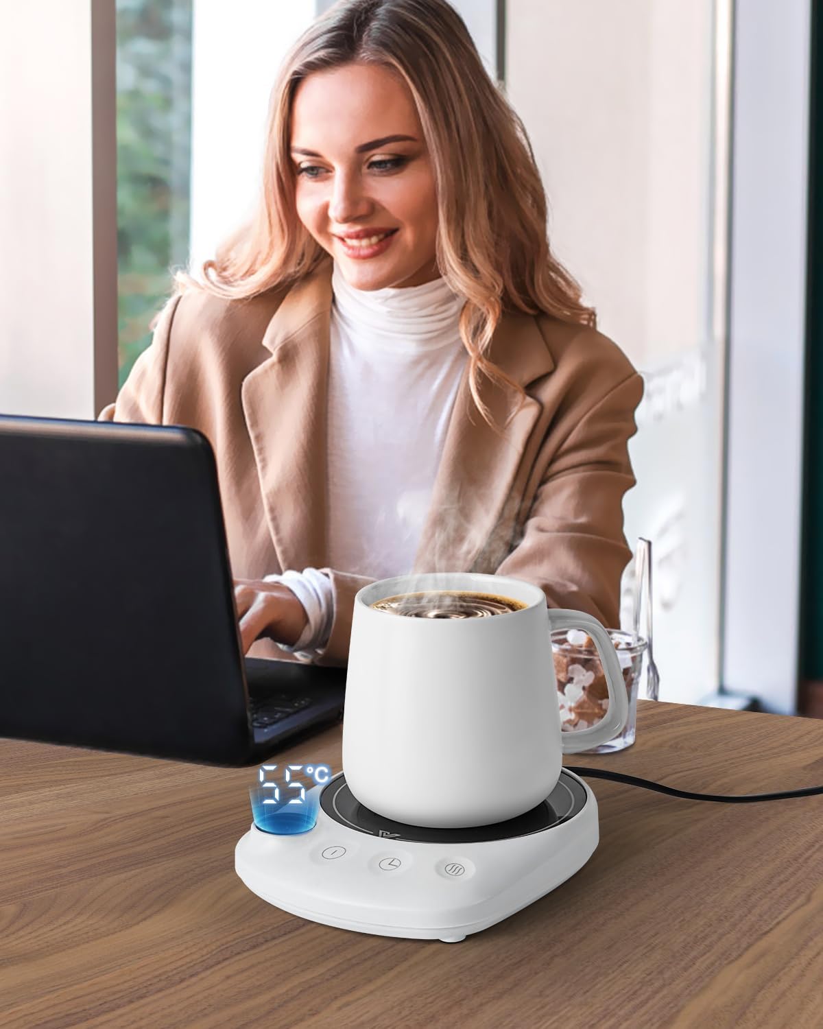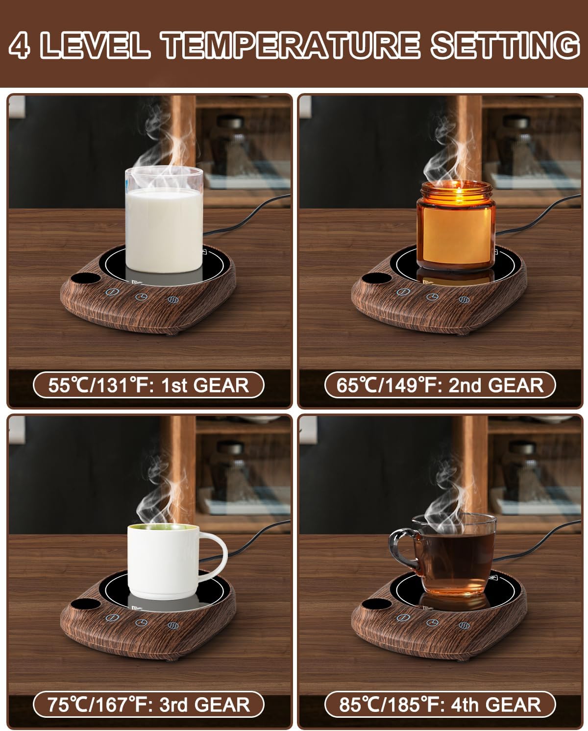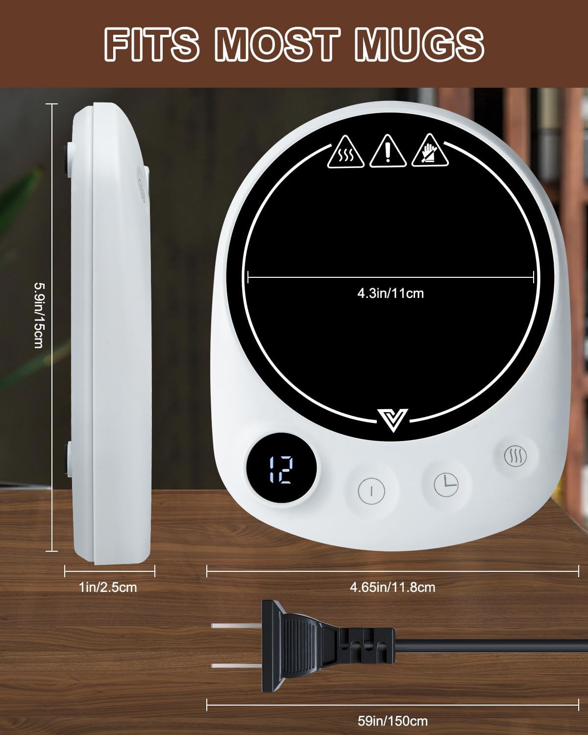 •  MYMULIKE Mug Warmer, Coffee Mug Warmer for Desk with 4 Temperature Settings (55℃/65℃/75℃/85℃), Coffee Warmer with Auto Shut Off, 1-12 Hour Timer, Desk Accessories for Office/Home