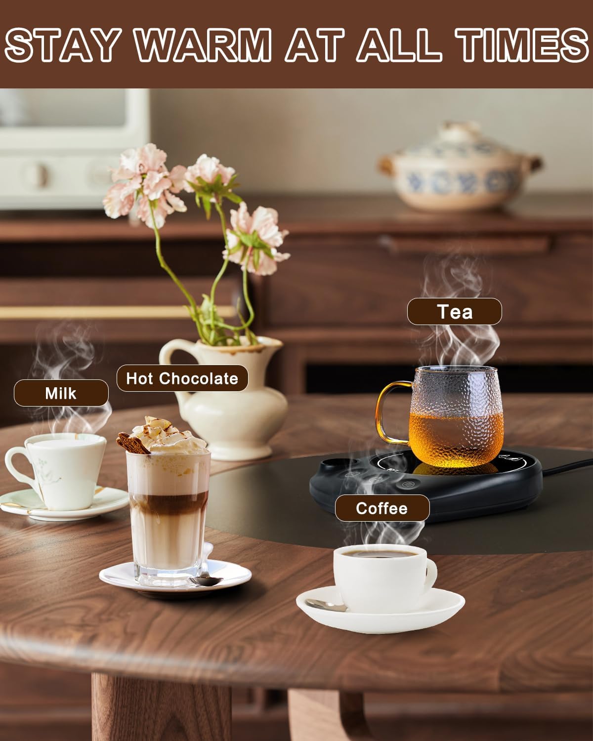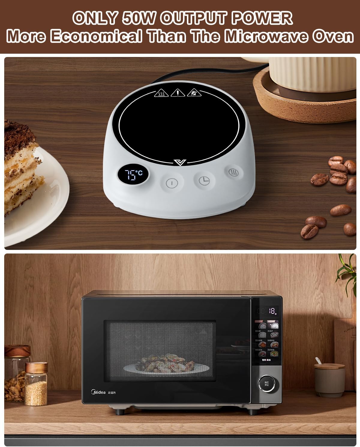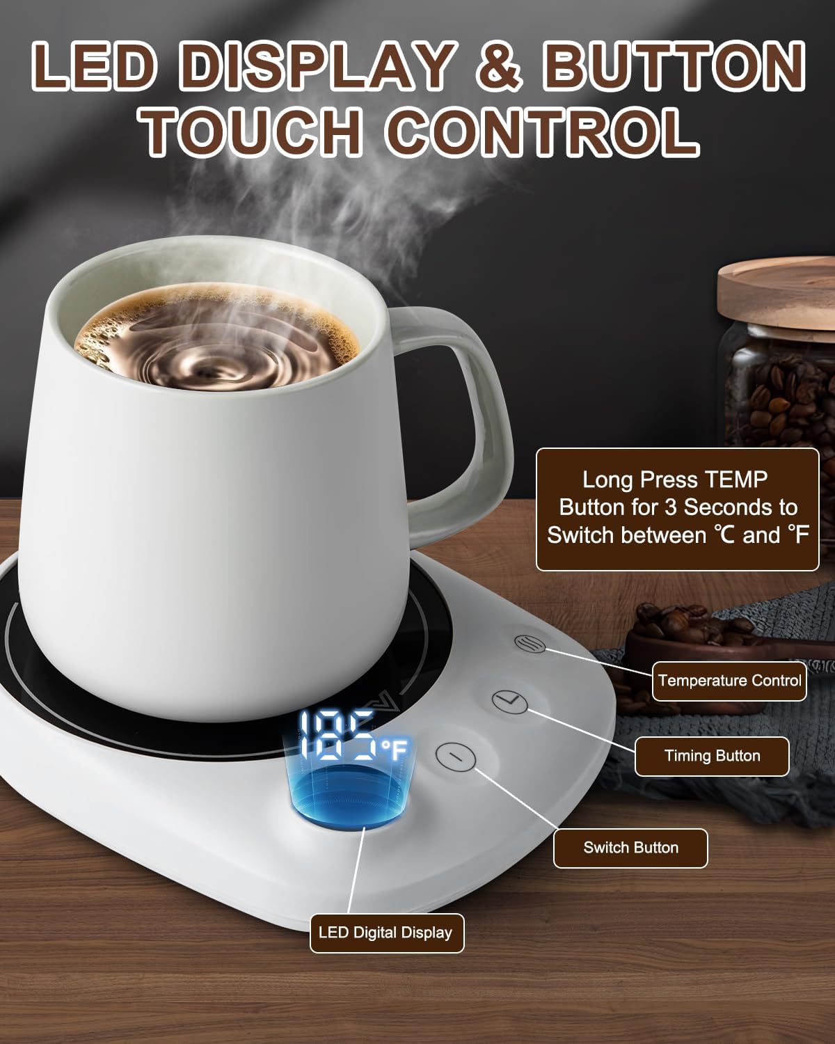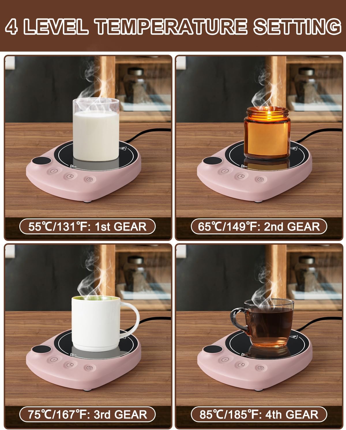•  MYMULIKE Mug Warmer, Coffee Mug Warmer for Desk with 4 Temperature Settings (55℃/65℃/75℃/85℃), Coffee Warmer with Auto Shut Off, 1-12 Hour Timer, Desk Accessories for Office/Home