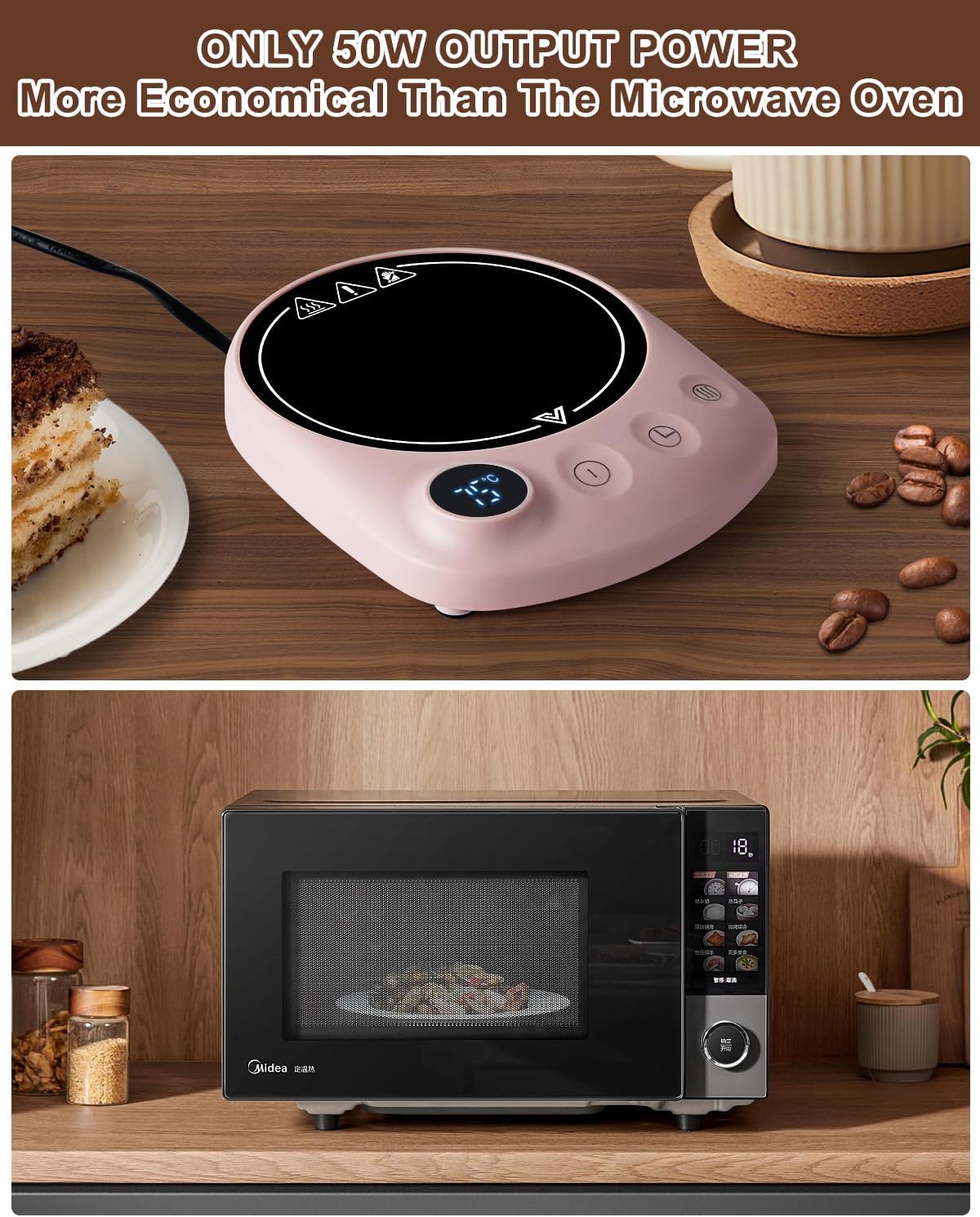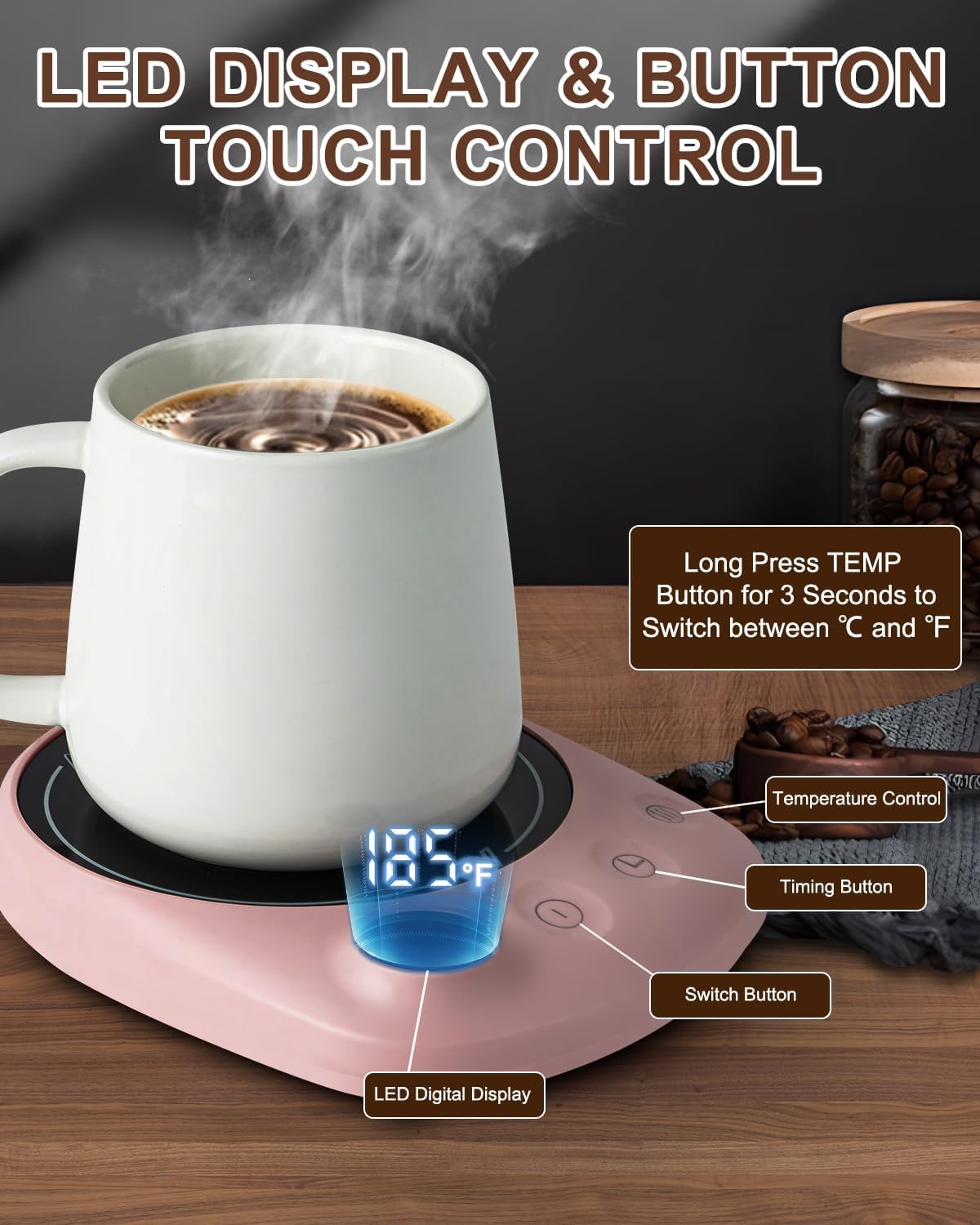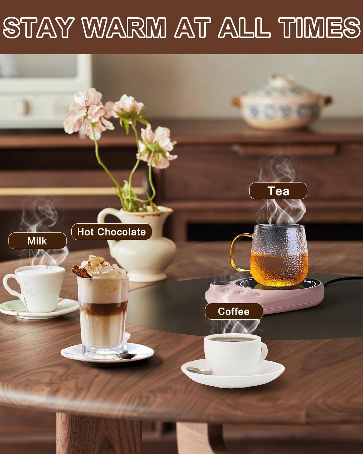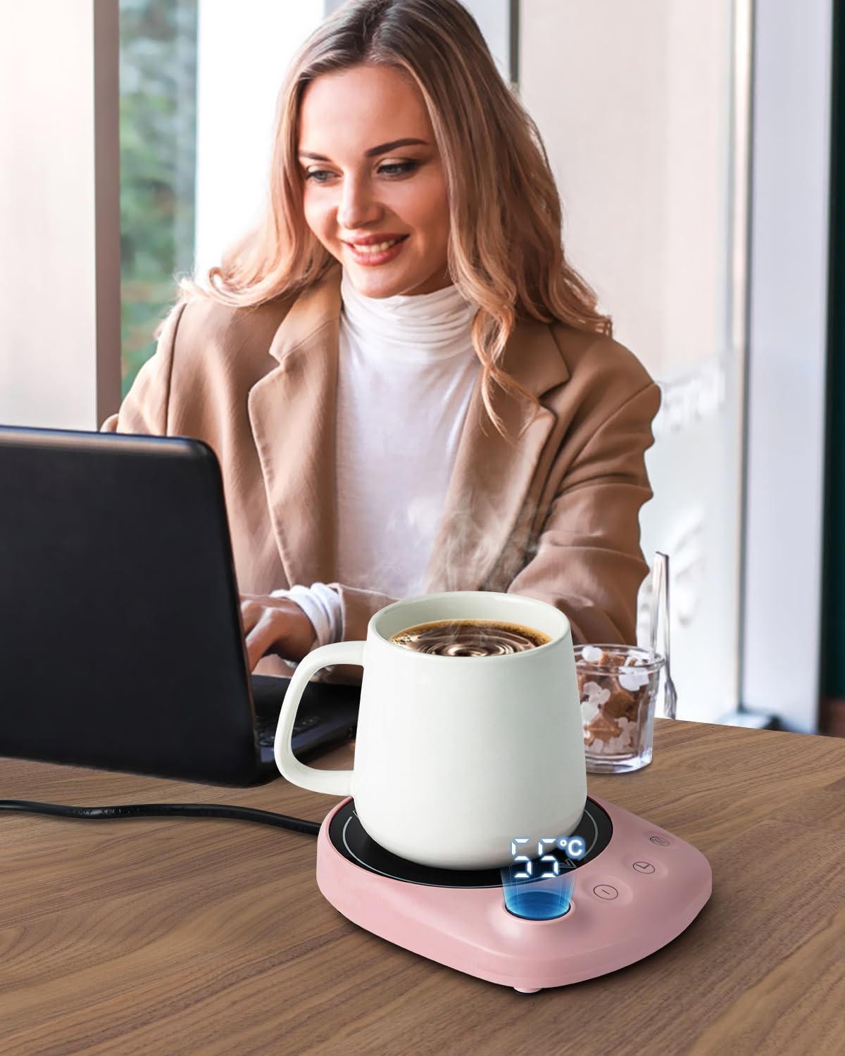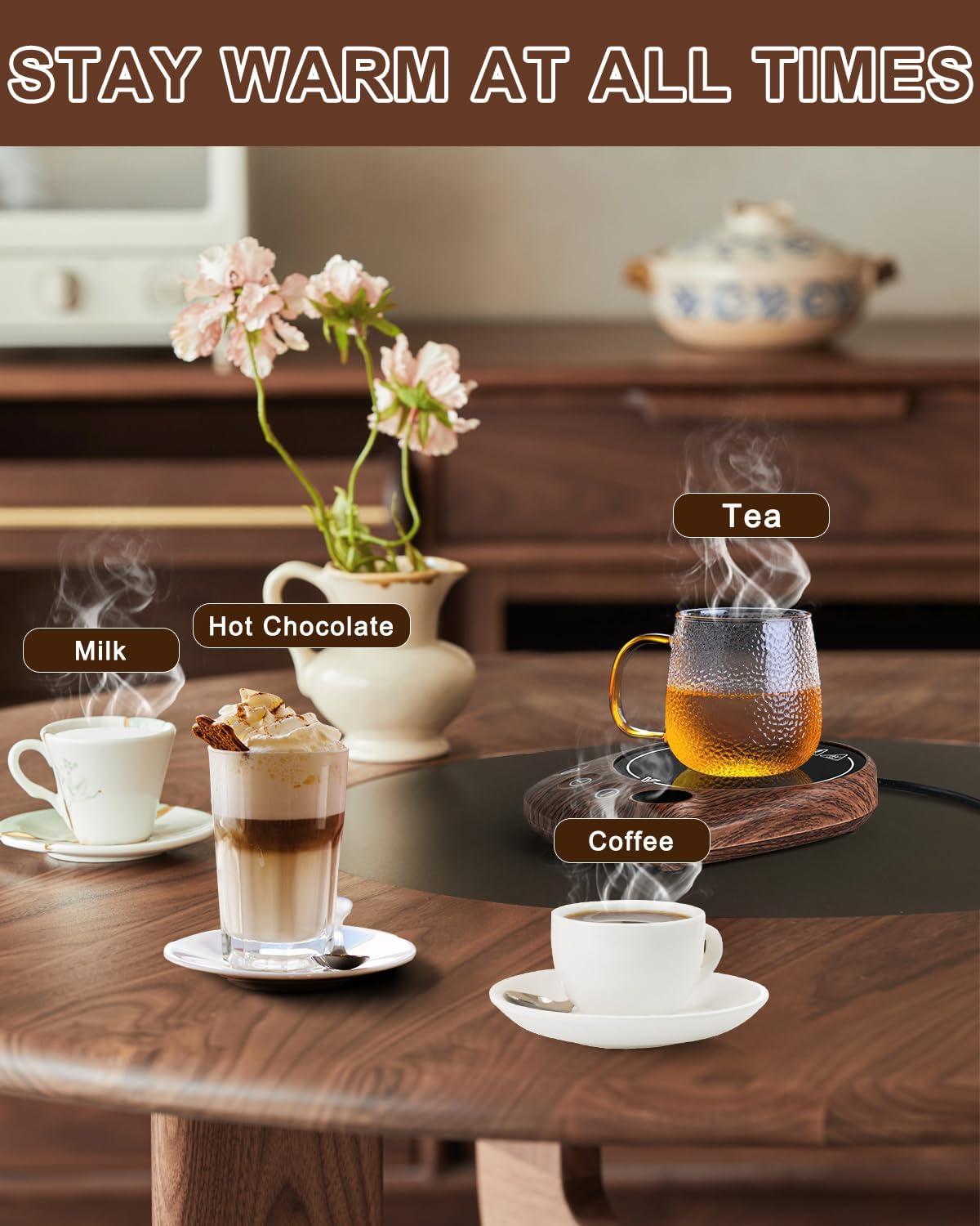 •  MYMULIKE Mug Warmer, Coffee Mug Warmer for Desk with 4 Temperature Settings (55℃/65℃/75℃/85℃), Coffee Warmer with Auto Shut Off, 1-12 Hour Timer, Desk Accessories for Office/Home