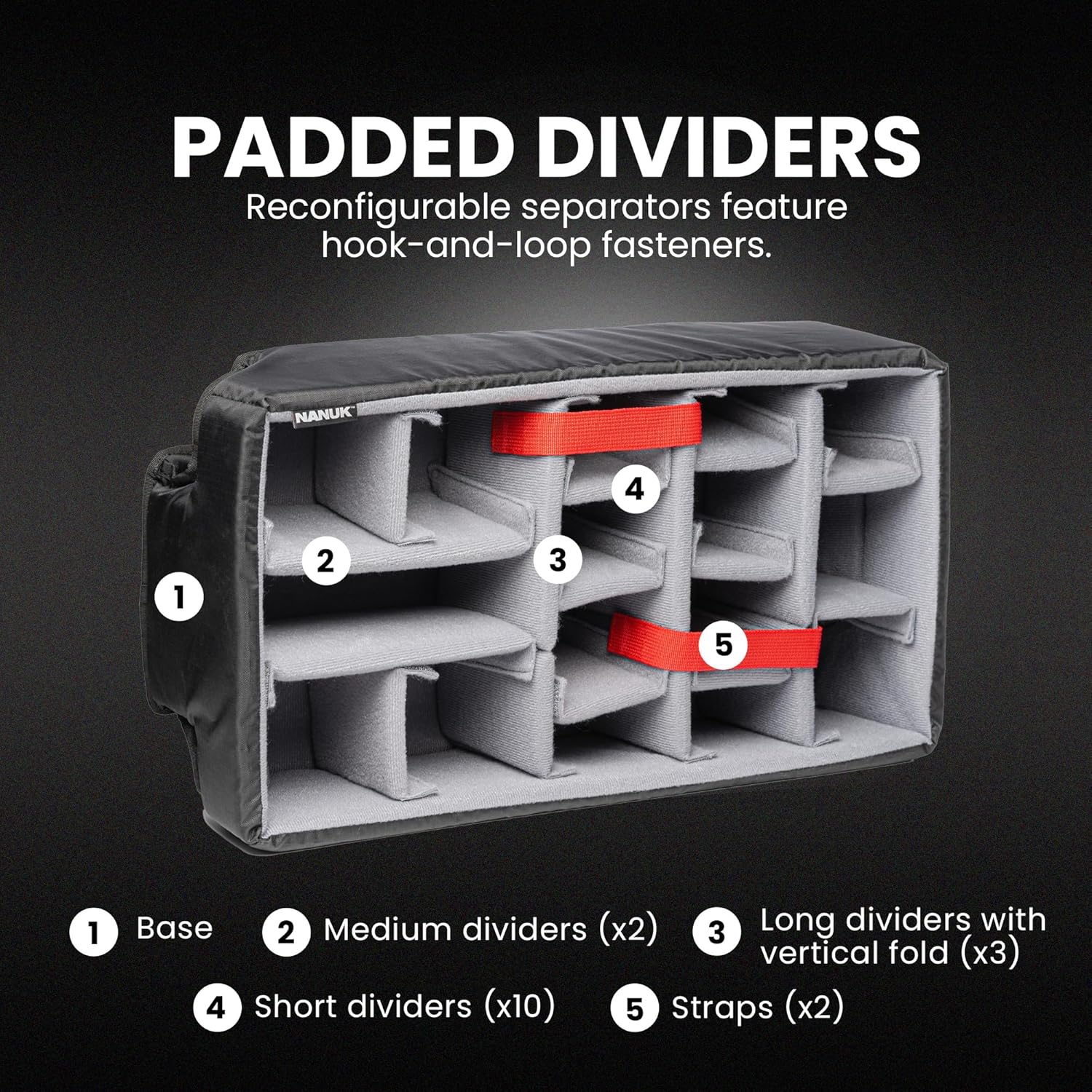 • STAY ORGANIZED: Customizable Padded Divider & Lid Organizer – The NANUK 935 Pro Photo Kit includes a customizable padded divider for camera bodies, lenses, and more, as well as a lid organizer with three anti-tear zippered compartments to organize smaller accessories like power cords, batteries, and memory cards.