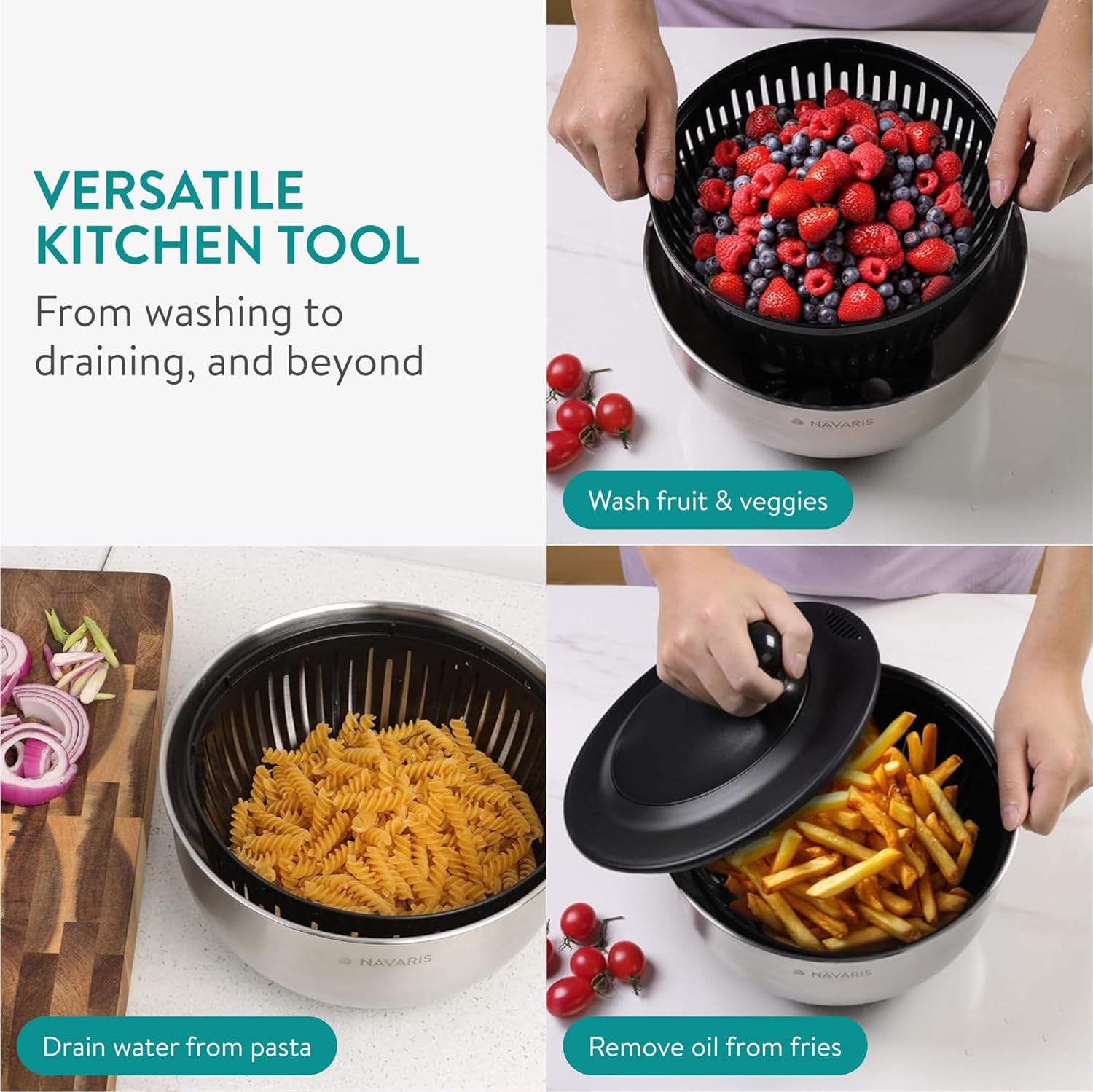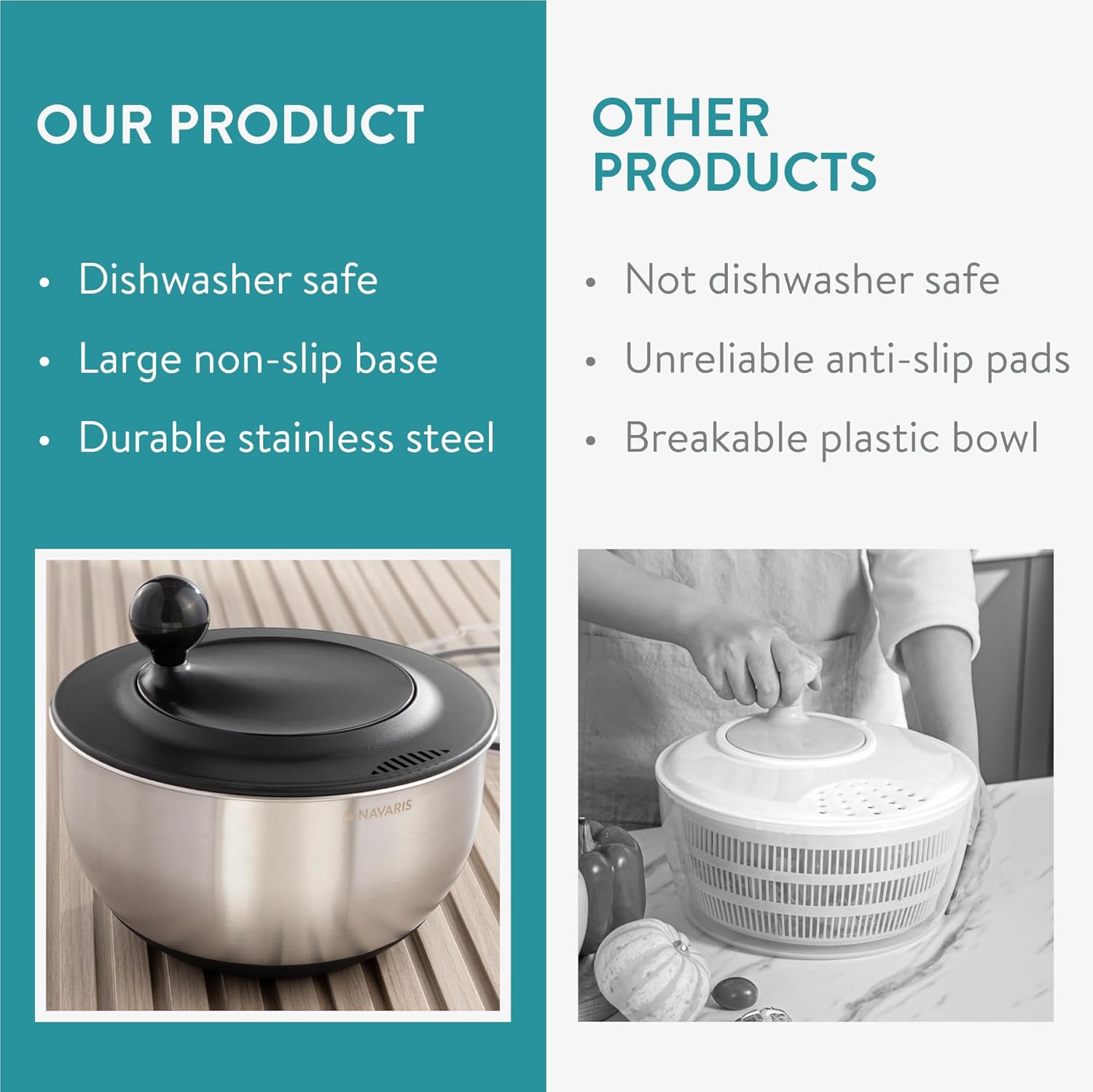 • Stable Use: The Salad Spinner features a non-slip silicone bottom that ensures stable use. Wash and spin your salads with confidence.