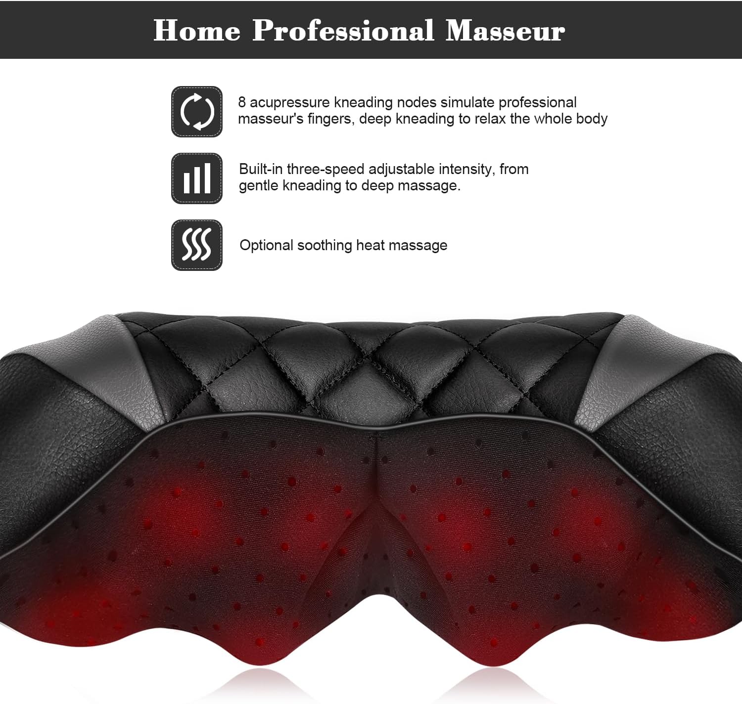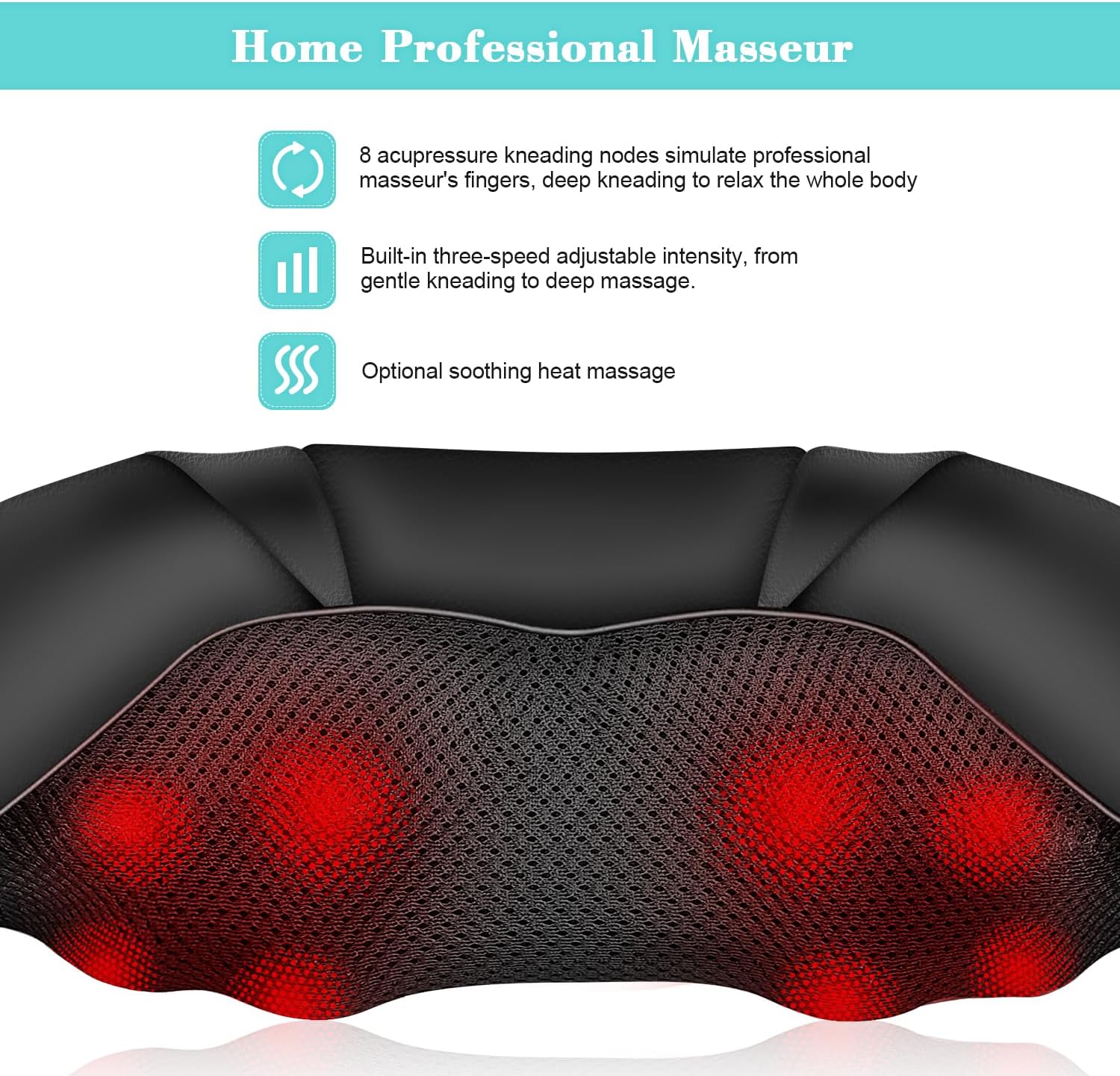 - 【HIGH-QUALITY WHOLE-BODY MASSAGER】 WOQQW new neck and back massager has 8 massage nodes for 3D deep massage. Simulates the shiatsu technique of a professional masseuse to achieve the most comfortable massage effect. Suitable for neck, shoulders, back, thighs and other body parts to fully relax the whole body