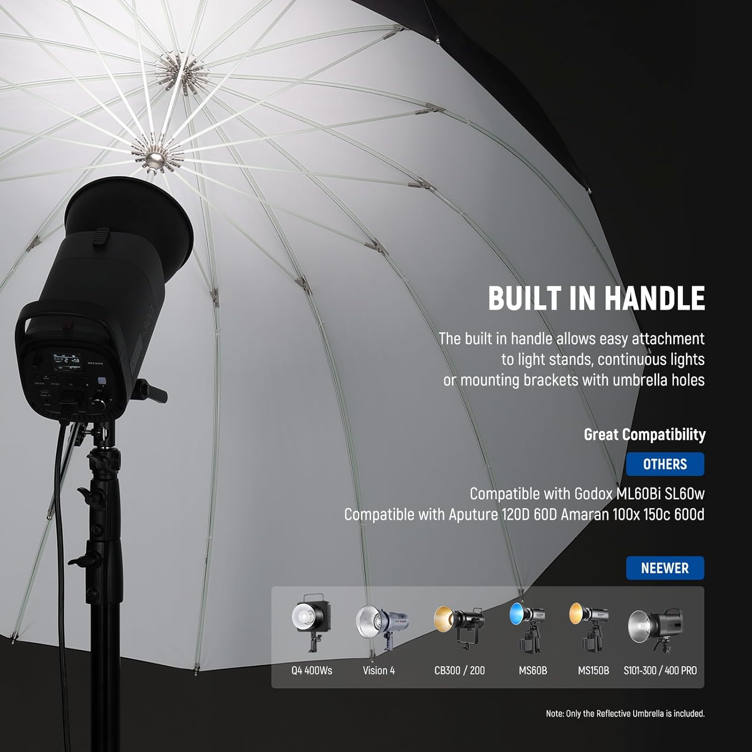 NEEWER 71"/180cm Parabolic Reflective Umbrella Photography with White Inner, Soft Lighting with Diffuser Cover, Bag, Quick Fold for Camera Photo Studio Video Light Shooting Monolight Flash, NS4UPL17-B0CTJPLM88