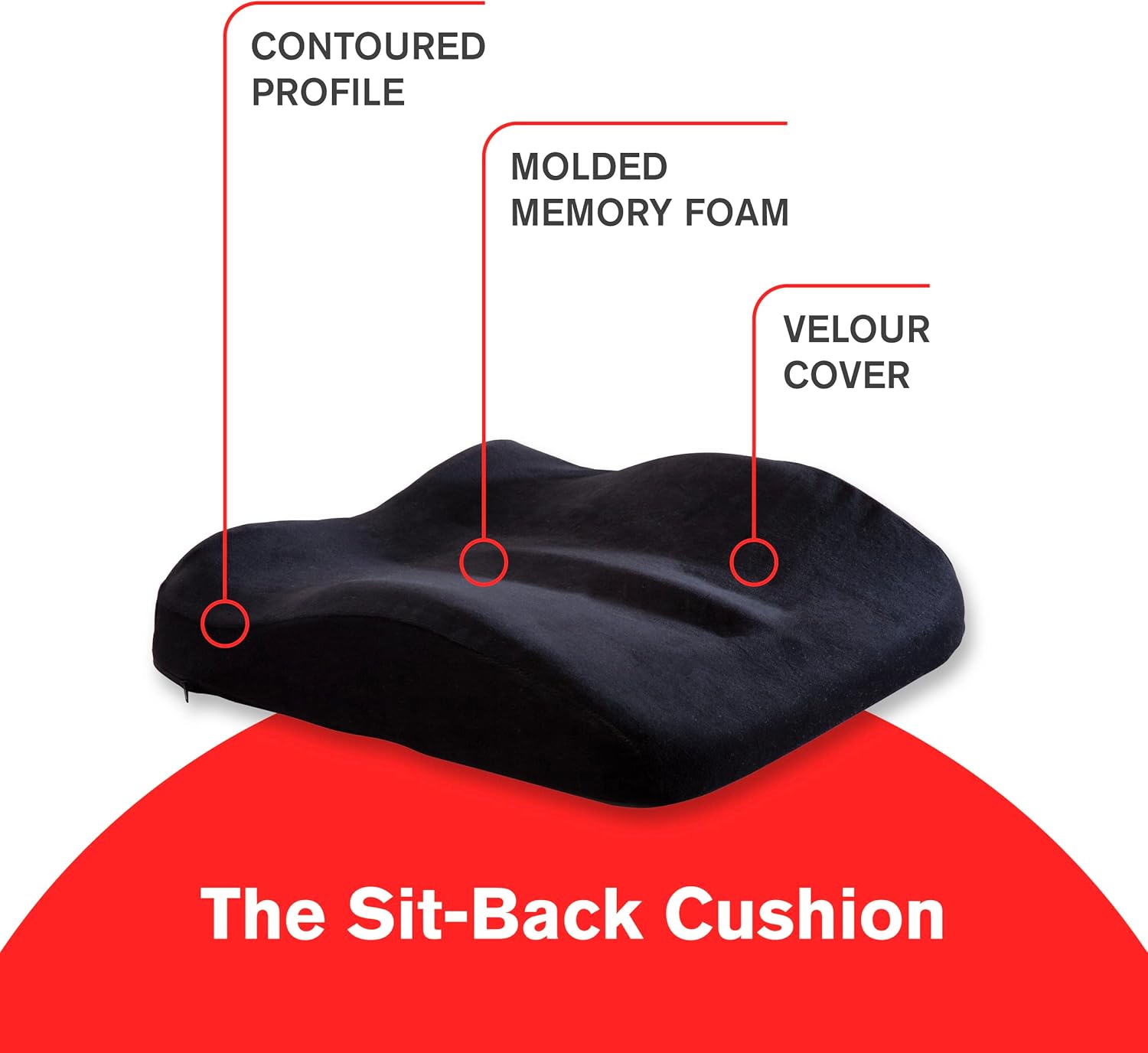 ObusForme Sit-Back Cushion – Seat Cushion and Posture Support, Contoured Ergonomic Design for Soothing Relief, Memory Foam Lumbar Support Pillow for Office Chairs and More