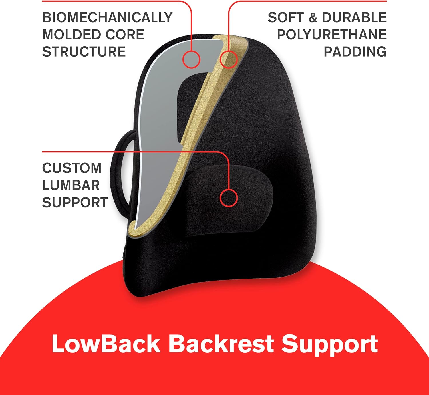 ObusForme Lowback Backrest Support - Lower Back Padded Seat Cushion and Lumbar Support Pillow, Portable Posture Support with Soft and Durable Foam
