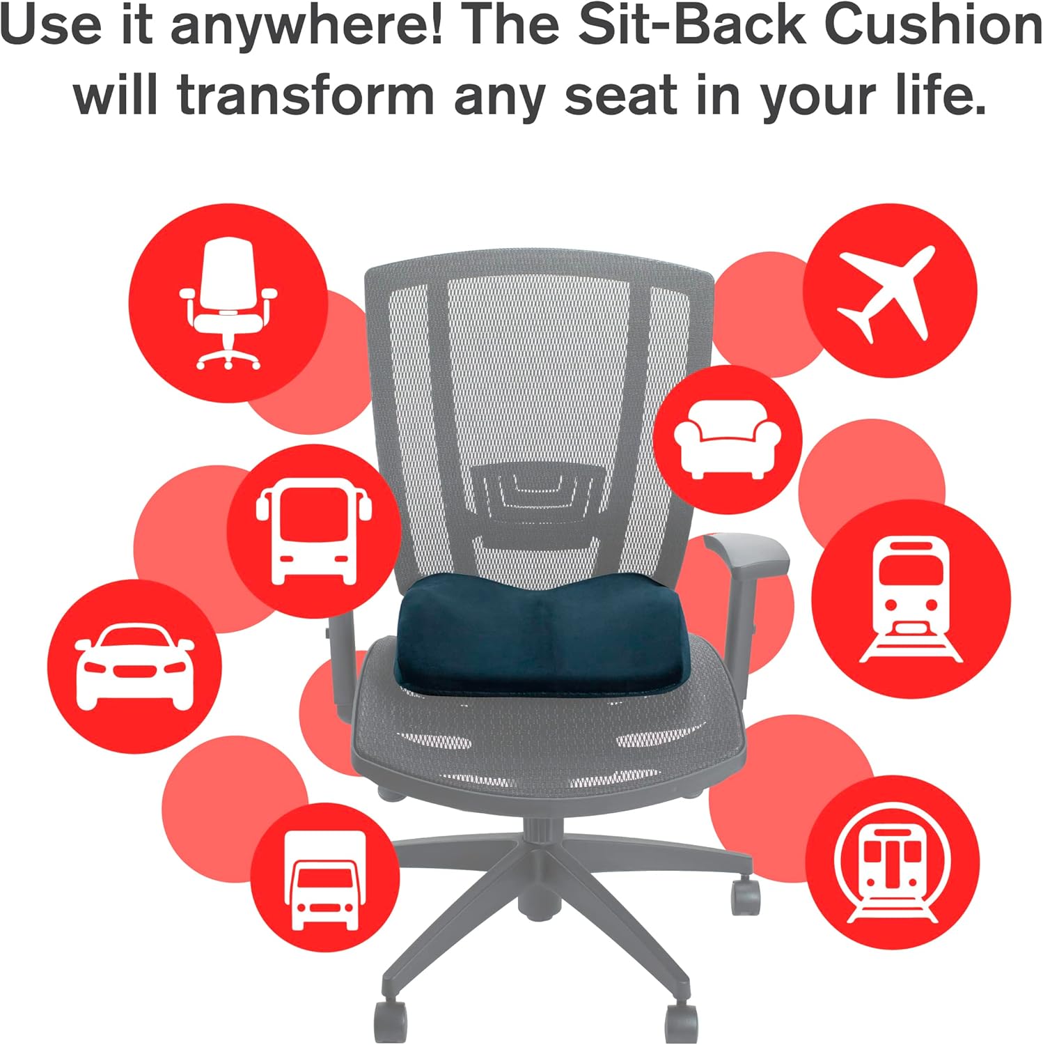 - PORTABLE SEAT CUSHION - The Sit Back Cushion is lightweight and compact making it easy to switch between a car seat back support and seat cushion for office chairs