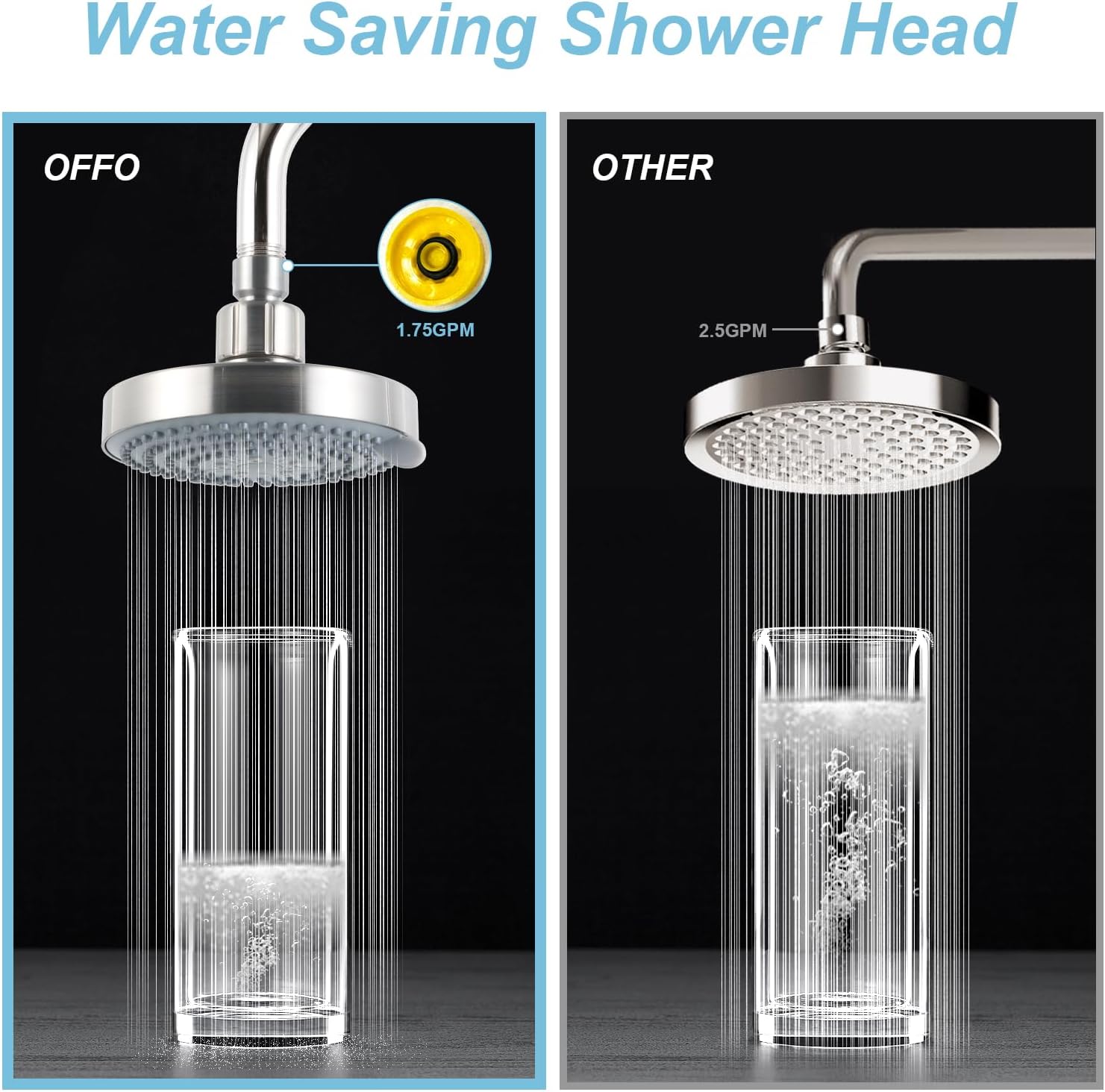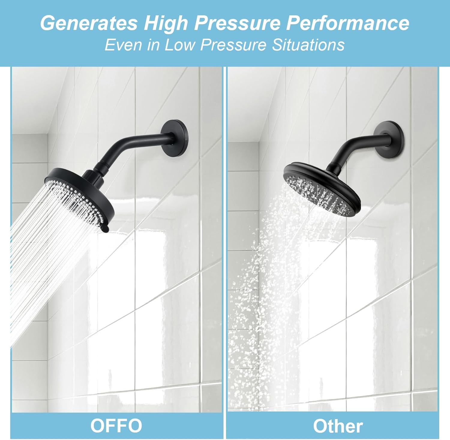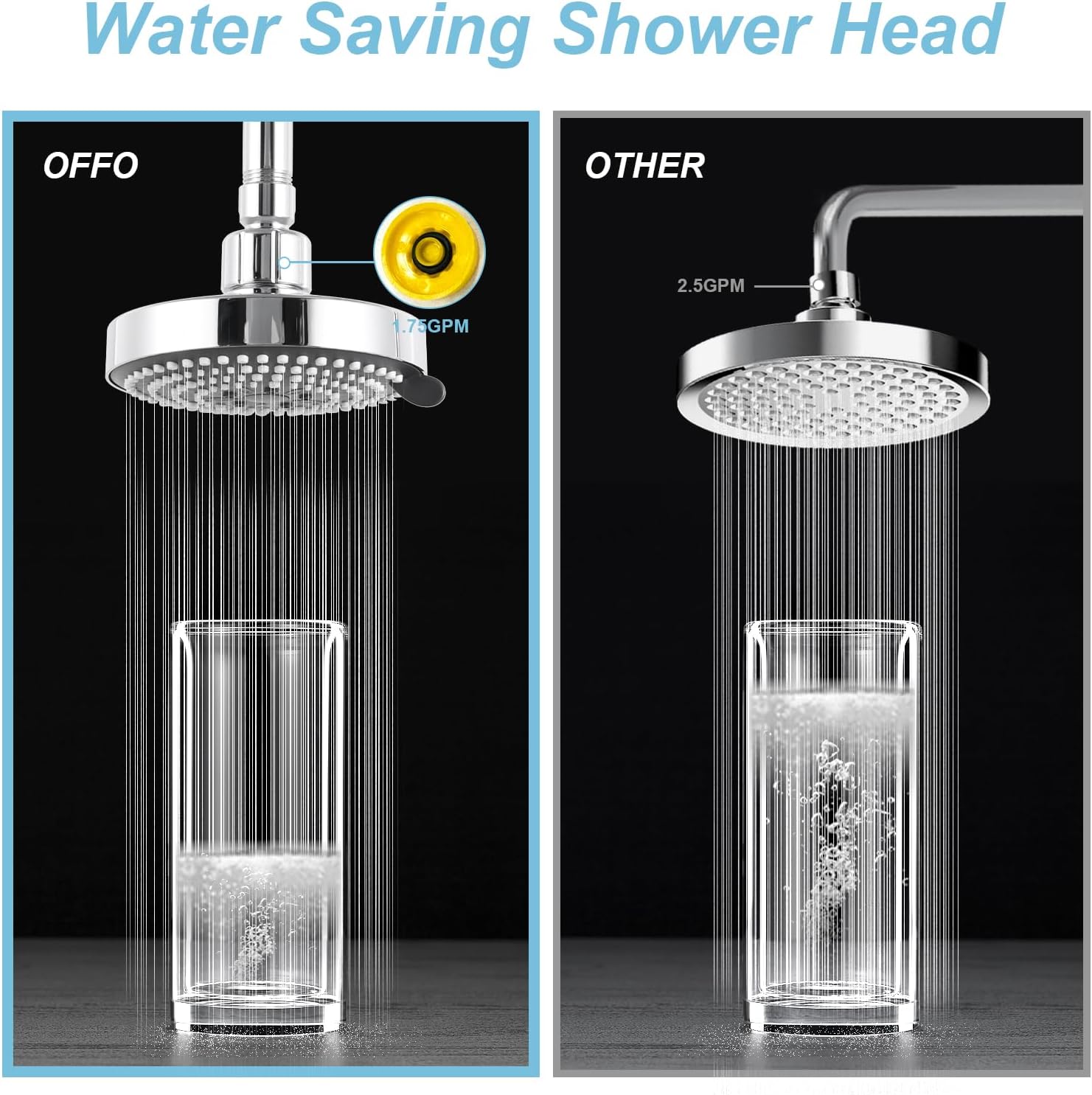 OFFO Shower Head, High Pressure Shower Head with 6 Mode, Fixed Showerheads for Strong Water Flow & Relaxing Shower Experience, Chrome