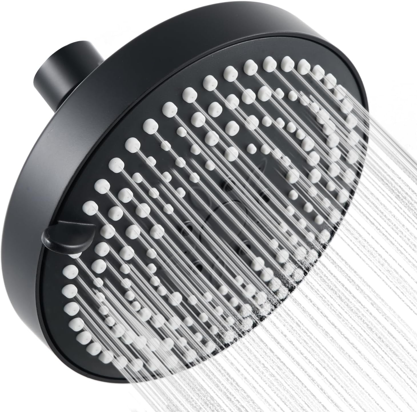 - 6 Mode Shower Heads: The 5 inch diameter high flow shower head includes 6 spray modes: oxygenated shower spray, rain, rain+massage, massage, massage+power wash, power wash. After a tiring day, you can choose the massage mode to let you relax with a hot shower