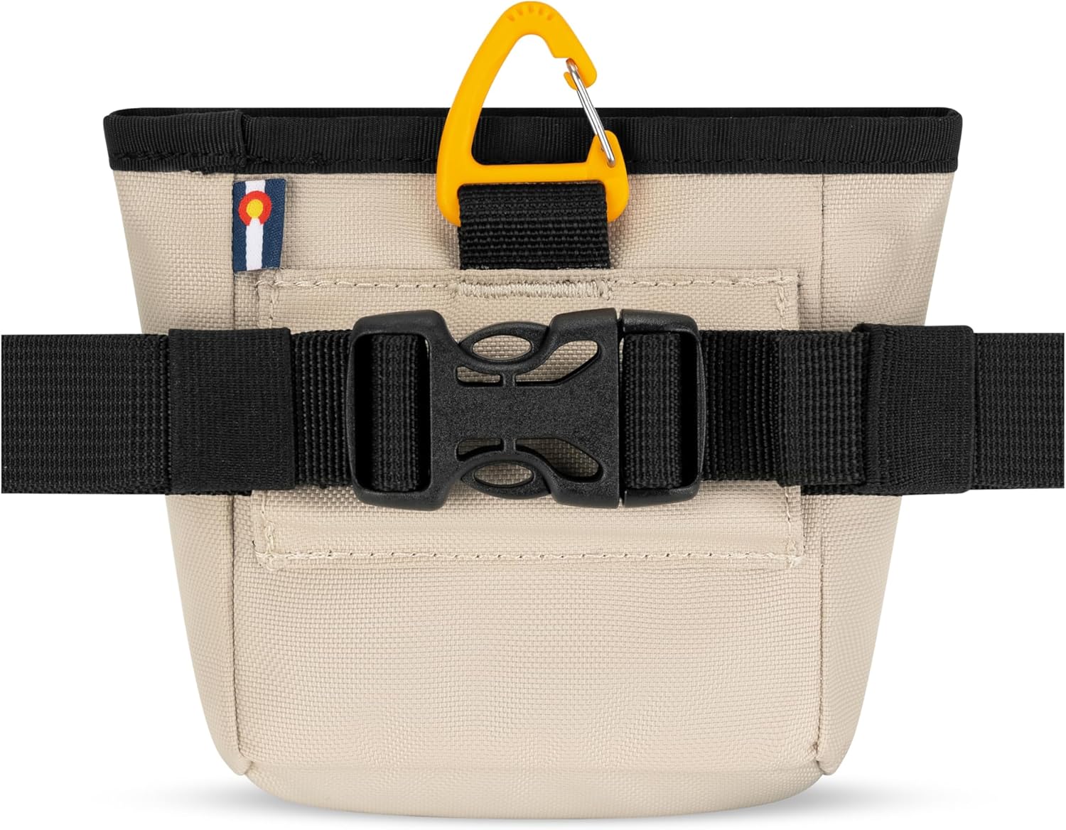 • FUNCTIONALITY & DURABILITY: Crafted with a vegan, non-toxic, recycled fabric that is water- resistant. The Goodie Treat Bag repurposes 3 plastic bottles into the perfect training treat pouch. Lightweight and easy to wear so that you have quick access to treats to reward your dog's good behavior while training. This bag can be worn around the waist, clipped onto a belt-loop, or threaded onto your personal belt. If there are any product issues or defects contact us so we can make it right!