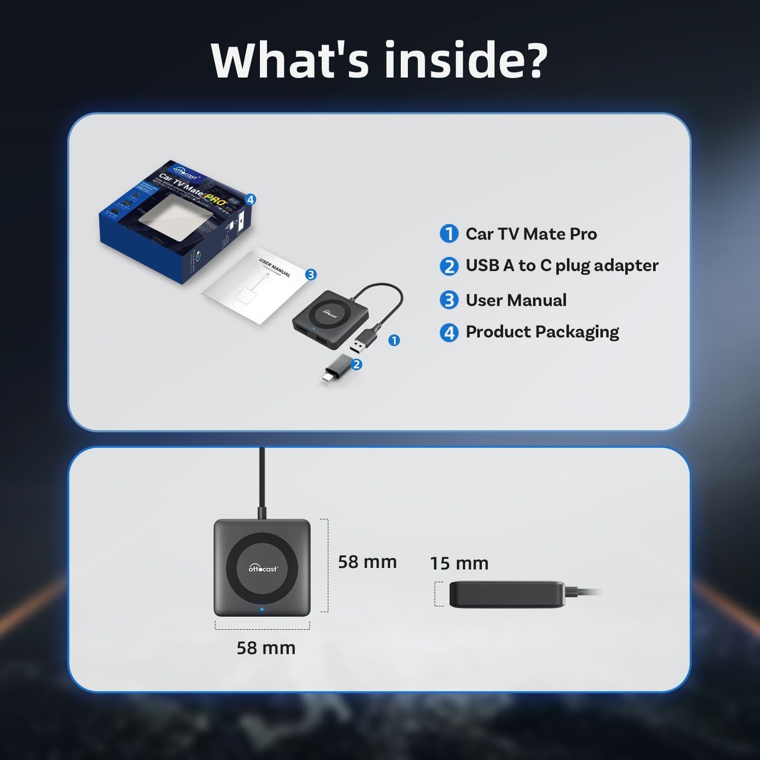 - 【Ultimate In-Car Entertainment with Car TV Mate Pro】: Elevate every journey with Car TV Mate Pro, the next-generation device that combines in-car entertainment and wireless Apple CarPlay. Seamlessly switch between streaming your favorite shows, movies, and games via TV sticks and accessing CarPlay for navigation and hands-free control. Note: You cannot use both features simultaneously.