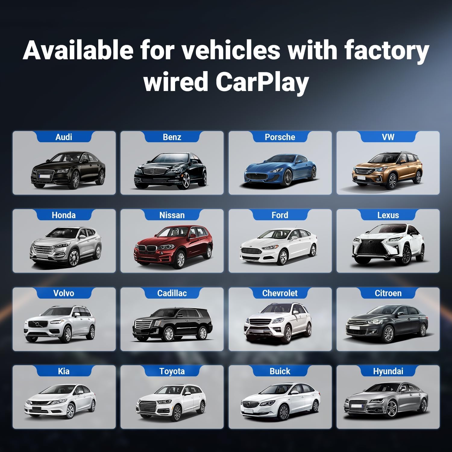 - 【Universal Compatibility with 800+ Car Models】: Car TV Mate Pro connects effortlessly with a wide range of devices, including TV sticks, gaming consoles, smartphones, and tablets. Compatible with over 800 car models equipped with factory wired CarPlay, from Ford F-150 and Chevrolet Silverado to Toyota Camry and Honda Accord. Whether you're using wireless CarPlay or watching media, your car's entertainment system is in good hands. Note: Requires a paired for Fire TV Stick remote to control.