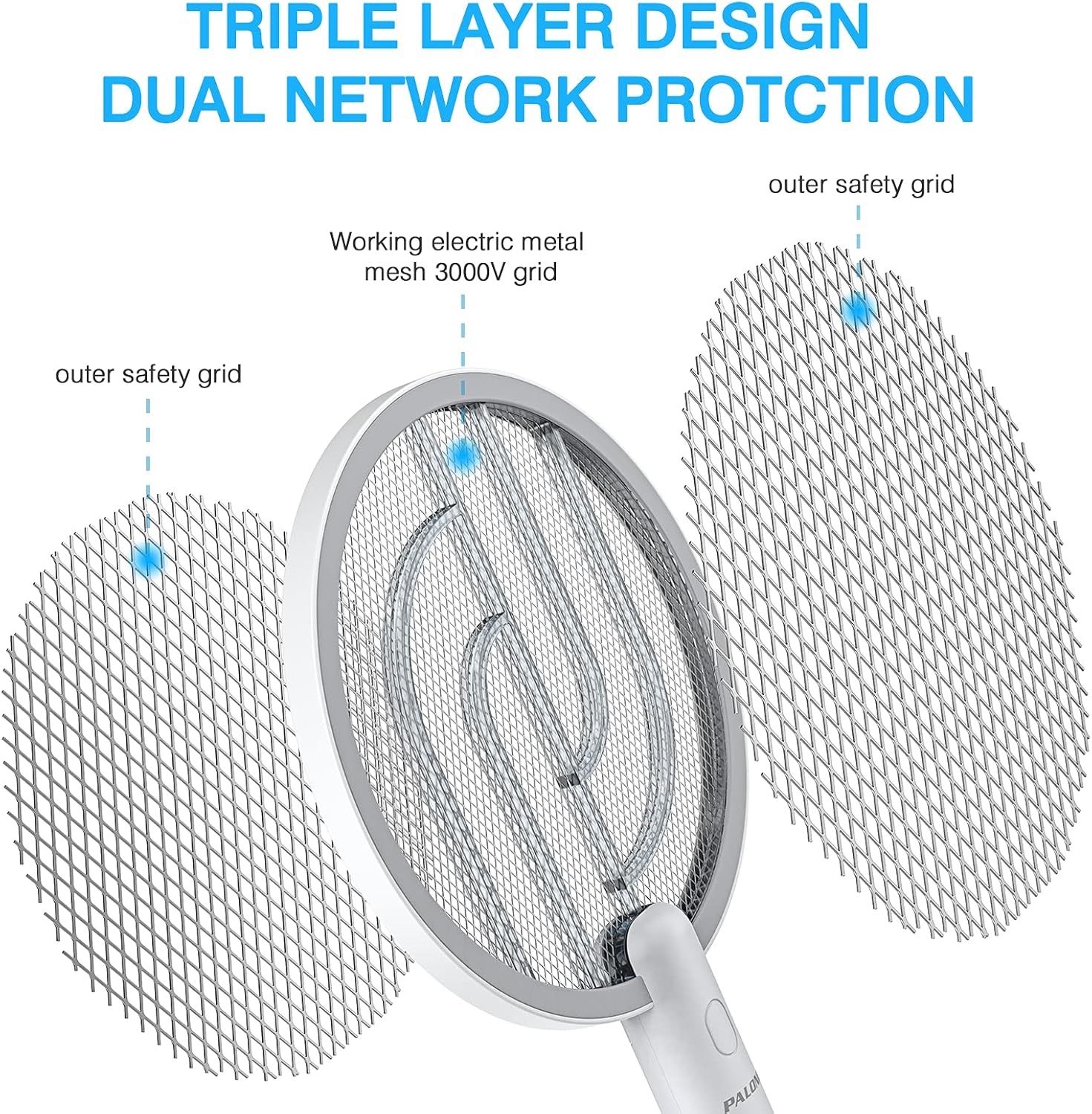 PALONE Bug Zapper Racket 3000V Electric Swatter 3 Layers Lamp Indoor Zapper Without Waving Hands for Kitchen, Home, Garden and OutdoorsPL17-B0D2SVP4PW