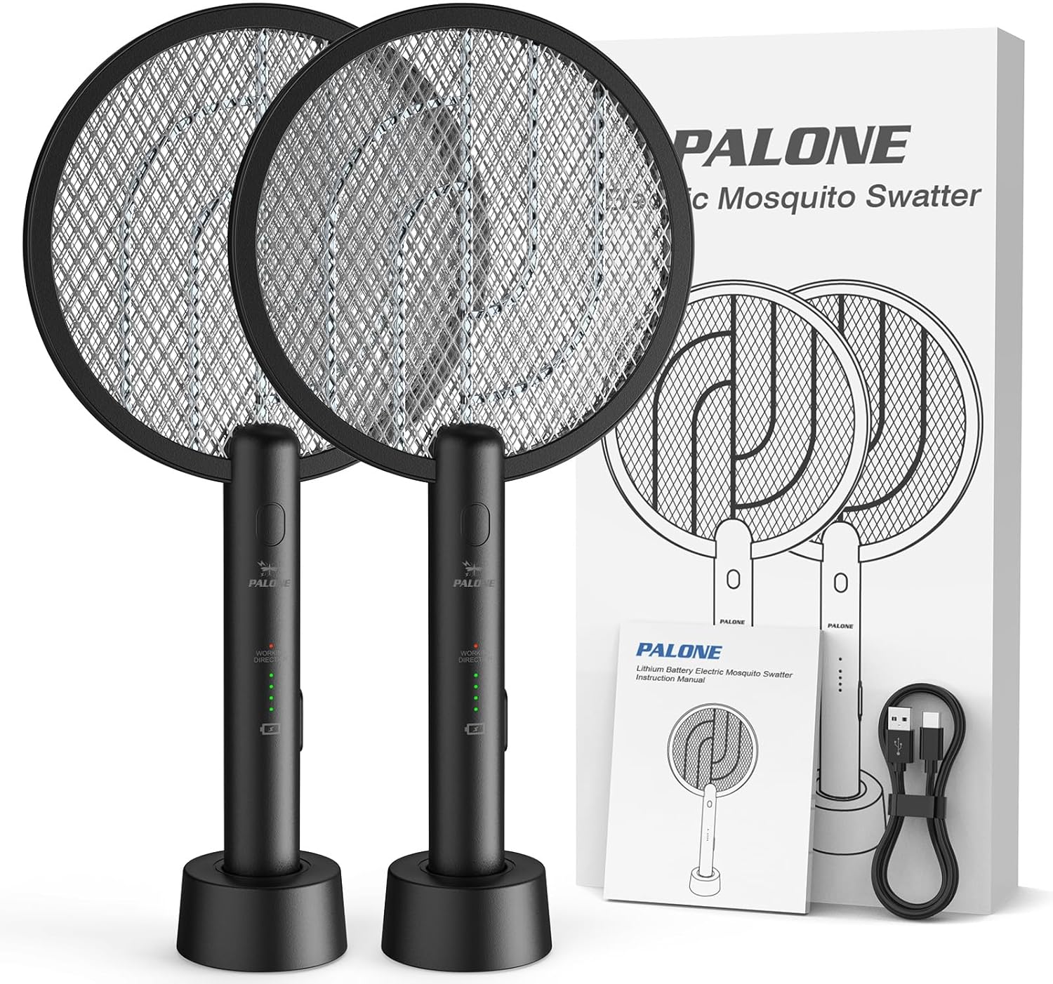 • 【Effective】PALONE electric swatter racket has a powerful 3000V high-voltage grid. To press the button, the powerful electric swatter can work effectively, On the automatic mode, they to get close to the high-volt grid and be electric shock instantly