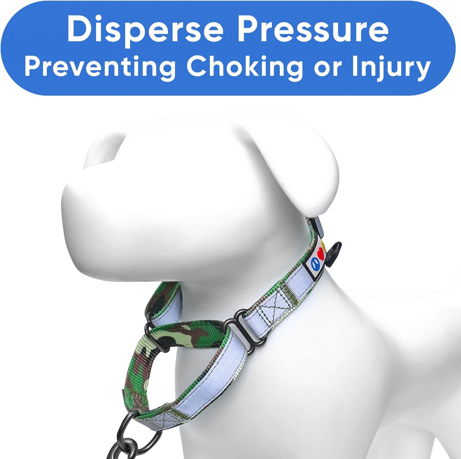 A HUMANE ALTERNATIVE TO CHOKE DOG COLLARS: Pawtitas Martingale Dog Collar provides more control over the animal without the choking effect of a slip dog collar / Le collier Martingale n'étrangle pas un chien contrairement à un collier étrangleur, il se contracte juste afin de rester bien ajusté sur le chien pour l'empêcher de s'échapper.