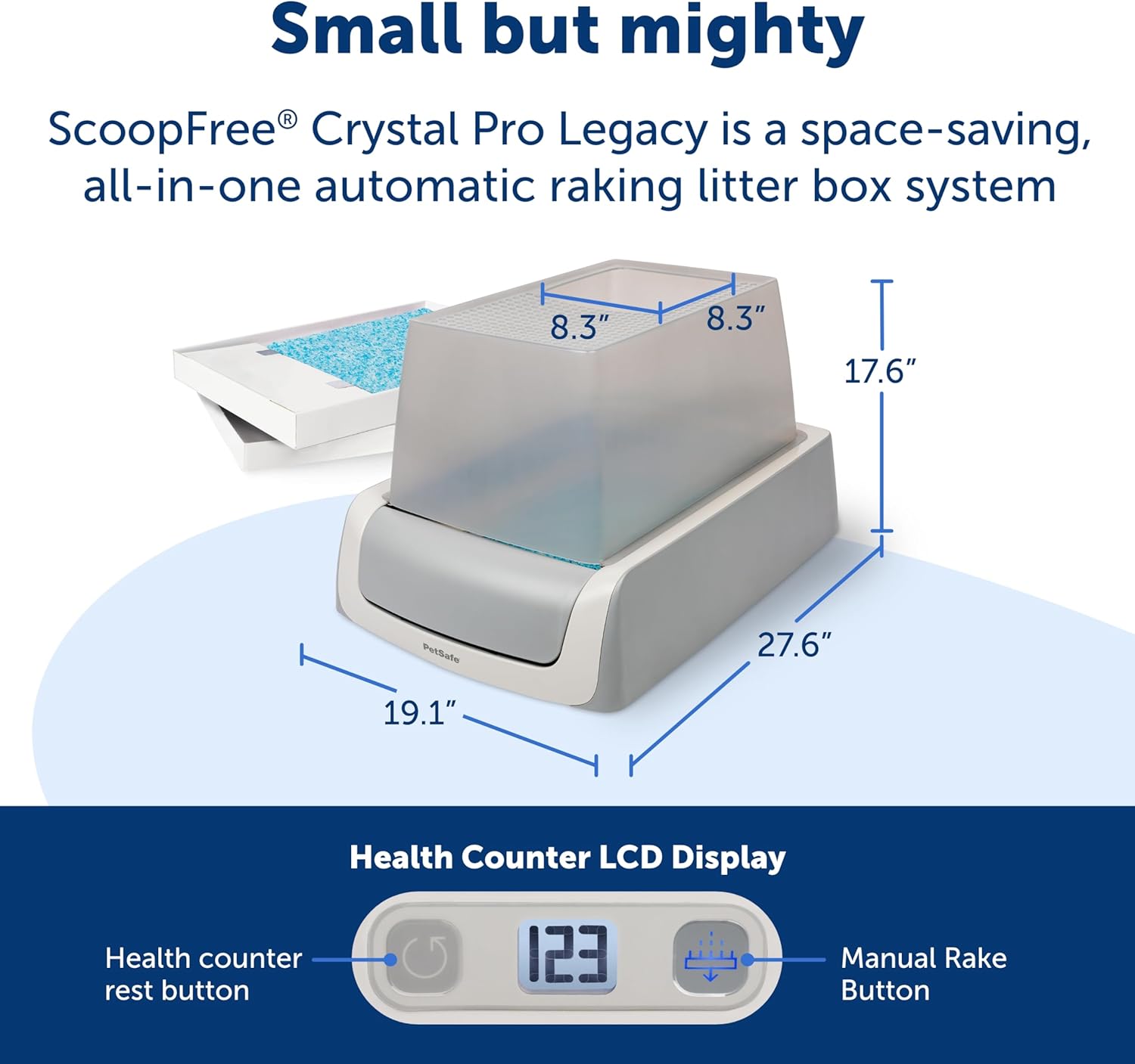 PetSafe ScoopFree Crystal Pro Self-Cleaning Cat Litter Box - Front-Entry - Hands-Free Cleanup with Disposable Crystal Tray - Less Tracking, Better Odor Control - Health Counter Helps Monitor Your Cat