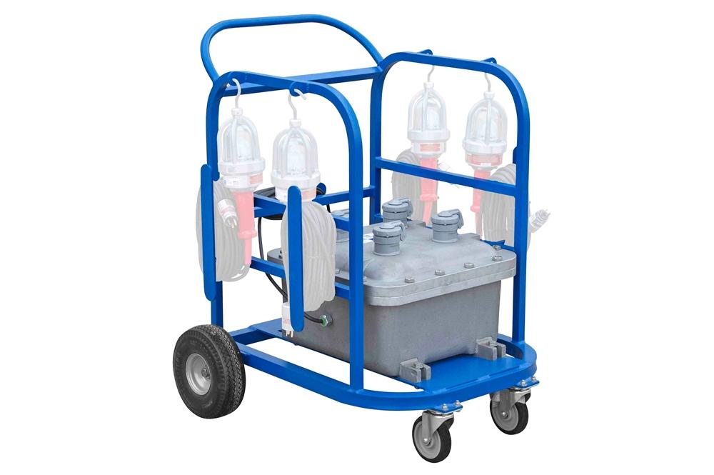 Made in Texas The Larson Electronics ATEX-EPL-RPS-70A-220V explosion proof power supply enables operators to power low voltage LED lights via four Class 1 and 2, Division 1 and 2 receptacles. Once the encapsulated 70ah sealed lead acid battery is depleted, operators can plug this unit into an explosion proof outlet to charge the unit overnight within the hazardous location. This ATEX-rated unit features an input voltage of 220V AC 60 Hz. When paired with Larson Electronics€™ EHL-LED explosion proof LED hand lamps, operators can run 4 hand lamps for 10.5 hours on a single full charge. *PLEASE NOTE: ANY FREE SHIPPING OFFERS DO NOT APPLY TO POWER DISTRIBUTION PANELS, TRANSFORMERS, OR SUBSTATIONS* The ATEX-EPL-RPS-70A-220V explosion proof portable power supply is built to provide operators in hazardous locations with a method of power low voltage hand lamps with 12 or 24 volts DC output. This unit, comes with an input voltage of 220V AC 60 Hz and includes four explosion proof receptacles rated at 20 amps each. This ATEX-rated compact power distribution system is designed for portability and convenience as well as durability and is mounted to a wheeled, non-sparking aluminum frame for added protection.