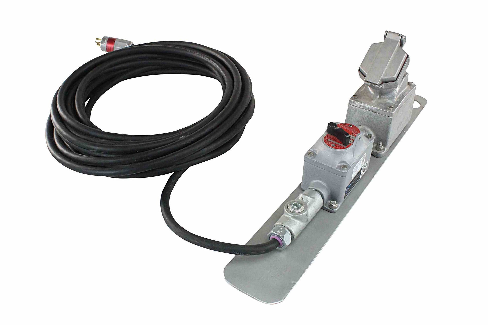 Wiring:  25` 12/3 SOOW Cable Terminated w/ (1) 20 Amp Receptacle and In-Line Switch - (1) Explosion Proof Straight Blade Plug