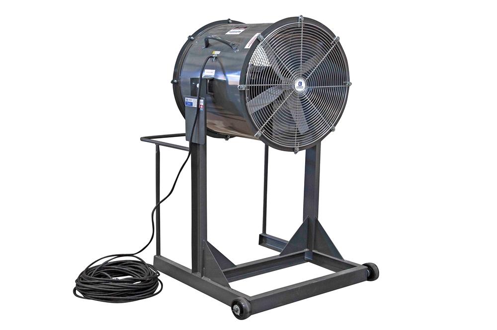 Features: This hazardous area unit features a non-sparking cast aluminum propeller with a 36-inch diameter. It offers compatability with 115/230V 60 Hz voltages. Under the hood, the machine is powered by a 1.5 HP, fully enclosed explosion proof motor. This allows the blade to rotate up to 1,725 times per minute (RPM) at a rate of 14,850 CFM. During operation, the unit emits 88 decibels from a distance of 10 feet, which is equivalent to the sound of busy city traffic.