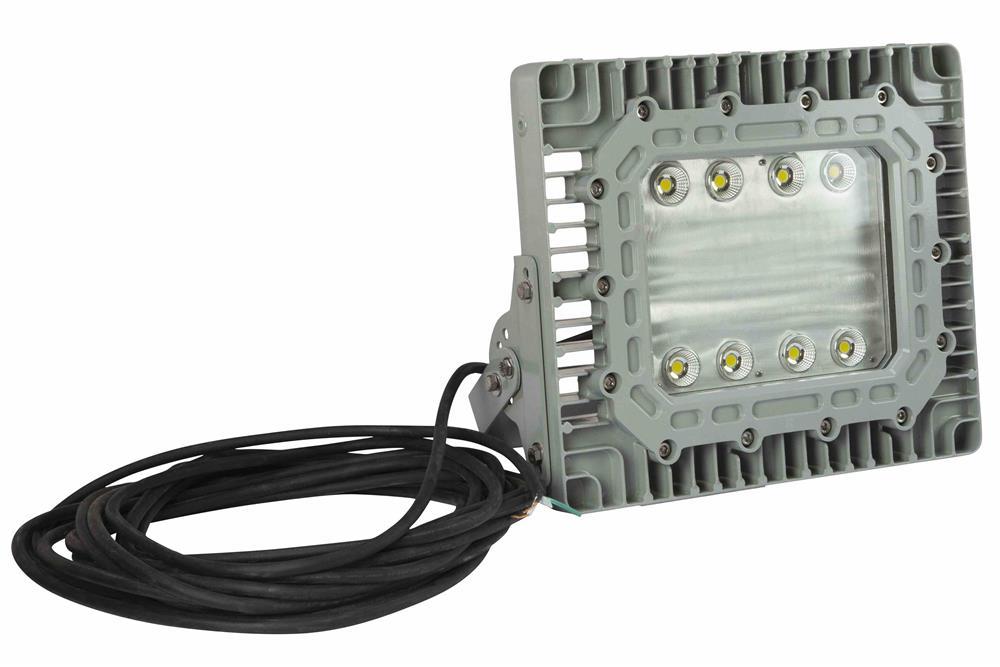 This Class I Divisions 1 & 2 and Class II Divisions 1 & 2 explosion proof light fixture provides 14,000 lumens of high quality light while drawing only 150 watts. The copper free aluminum alloy body is powder coated for added durability and an attractive aesthetic appearance. A special heat dissipating design in conjunction with LED technology helps this fixture to achieve an excellent 60,000 hour rated lifespan with 80% lumen retention. The lightweight design and low profile make this unit an attractive alternative to larger and heavier older fixtures and requires less hardware to install.