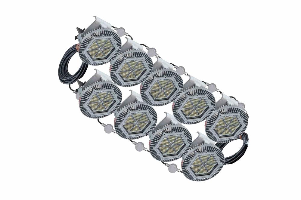 1. Low power consumption. 2. Instant on/off operation. 3. Fixture constructed of extruded corrosion resistant copper free aluminum alloy. 4. Superior color rendering compared to HPS, LPS, MH. 5. Retains 80% lumen output after 60,000 operating hours. 6. Powder coated aluminum fixture body. 7. I-beam clamp mount. 8. Low profile - lightweight. 9. 90,000 lumen output from nine, 150W LED lamps. 1. 60,000 hour lifespan. 2. Can SAVE 50% or more on energy. 3. Qualifies retrofit projects for financial incentives, including utility rebates, tax credits and energy loan programs. 4. Reduces energy use and prolongs lifespans of peripheral cooling units (A/C, refrigeration). 5. 100% recyclable. 6. No toxins-lead, mercury. 7. No UV light, infrared radiation or CO2 emissions. 8. Qualifies buildings for LED and other sustainable business certifications. 9. Bright, even light maintains consistent color over time. 10. Instant on/off €“ No flickering, delays or buzzing. 11. Very good color rendering. 12. Vibration/impact resistant. 13. Significantly cooler operation. 14. Less frequent outages, higher output improves workplace safety.