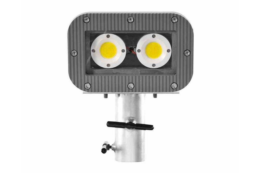 The EPLX-PT-40W-SQ2-LED-TRC Explosion Proof Pole Mount Slip Fit AC LED light fixture from Larson Electronics is a compact powerhouse built to withstand demanding conditions. This LED pole mount light features state-of-the-art AC LEDs paired with specially designed heat sinks for improved efficiency, thermal management, and durability. Available in 5000K cool white and 3000K warm white options, a 100° flood beam provides crisp, bright illumination with broad coverage, and an adjustable light head allows for 180° of repositioning. This heavy duty Class I Division 2 Groups A, B, C, & D LED lamp is suitable for oil refineries, petrochemical plants, painting facilities, offshore rigs, marinas, docks, warehouses, garages, and commercial buildings.