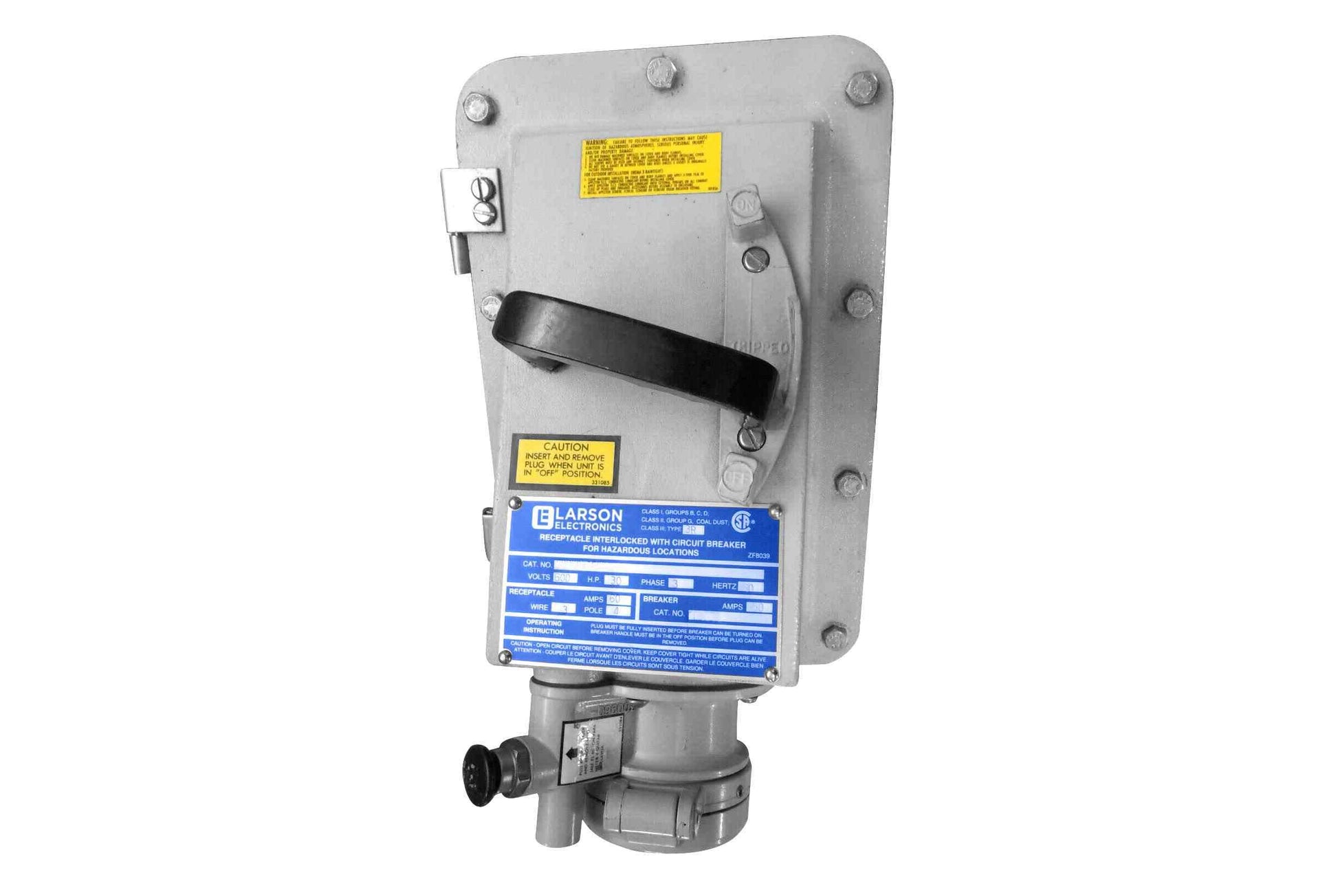 Larson 100A Explosion Proof Receptacle w/ Interlocked Circuit Breaker - Class I, II, III - 3W4P - 600V AC/250V DC Rated