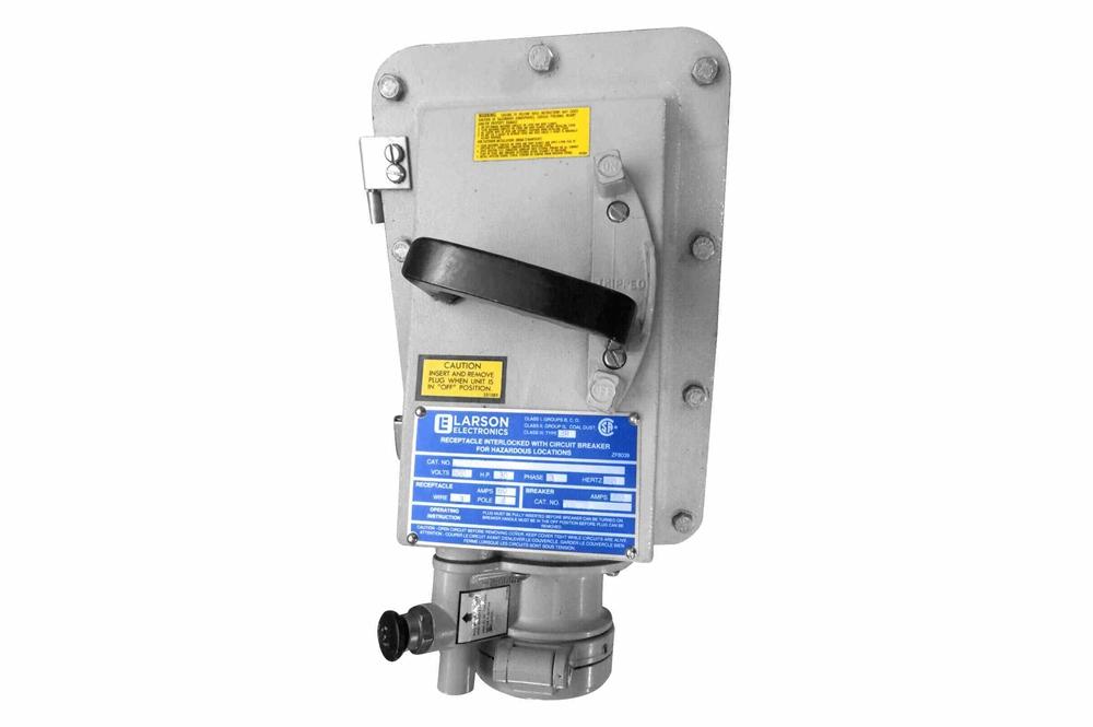 150A Explosion Proof Receptacle w/ Interlocked CB - Class I, II, III - 3W4P, 600V AC - Type FD Breaker - (2) Hubs