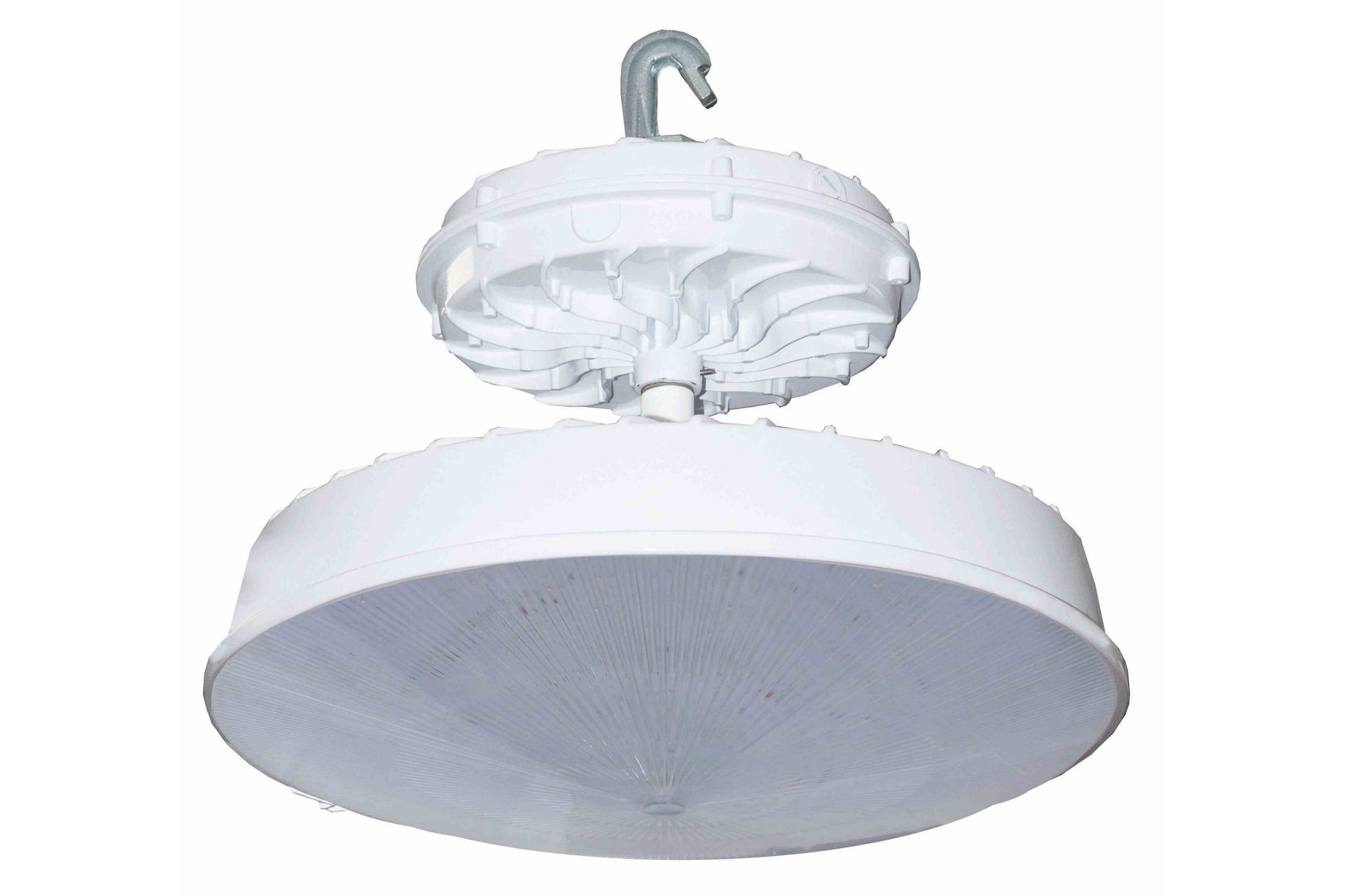 The GAU-HB-16-400W-MS-WCM High Bay Circular LED Lamp is a suitable replacement for 400-600W HID/MH fixtures. This 200-watt luminary operates on standard 120-277V AC voltages and comes with an electronic, dimmable driver. A compact microwave motion/occupancy sensor streamlines operation and minimizes energy consumption. Featuring an external heat sink, the LED lamp is mounted using a 1" malleable hook with a 4" stem for vertical positioning. When ordering this product, please choose the preferred color temperature (4,000K or 5,000K) and lens (Clear Flat Glass, Clear Flat Prismatic or Acrylic Conical) below.
