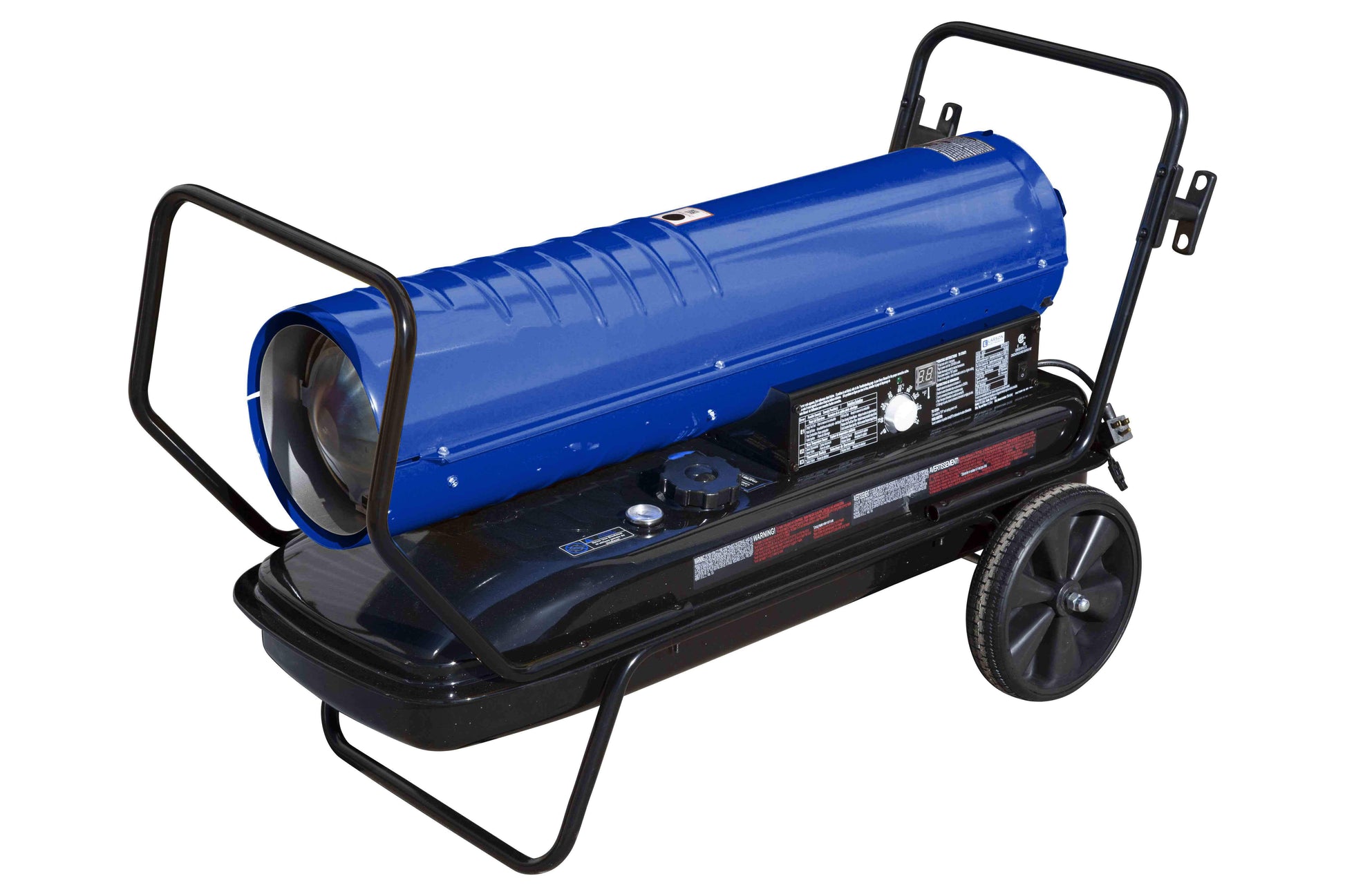 Larson Cart Mounted Forced Air Heater - 120V - Kerosene/Diesel - 670 CFM, 215000 BTUs - 13 Gal Tank - Blue