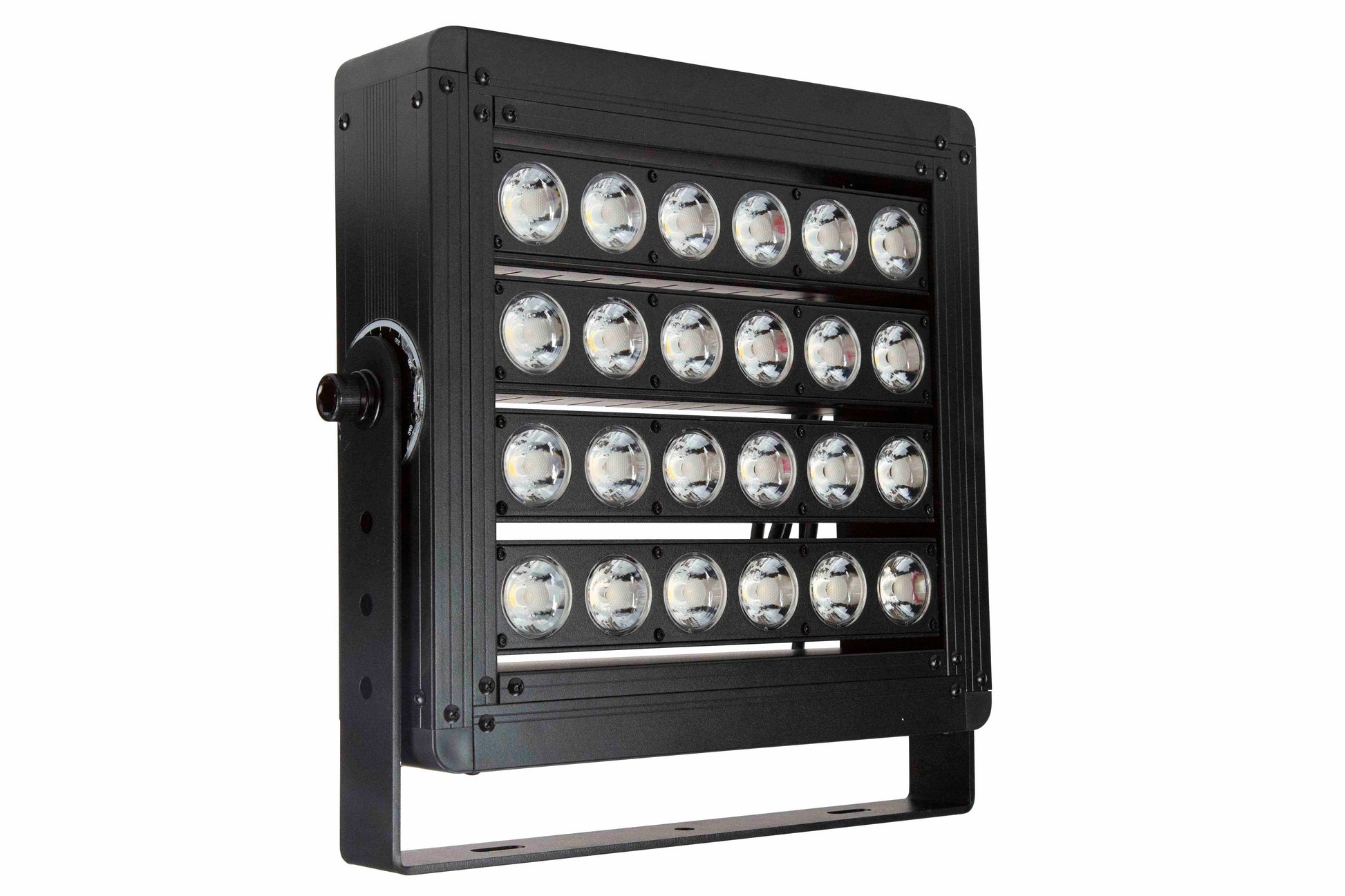 Each unit is equipped with a back mount trunnion style mounting bracket that allows the light to be attached to flat surfaces and adjusted through 160° of vertical movement. To adjust the unit after mounting, the user simply loosens the set screws located on either side of the unit, moves it into the desired position, then re-tightens the screws. The base of the mounting trunnion is equipped with several machined slots which allow users to utilize existing mounting holes and slide the unit for precise mount positioning.