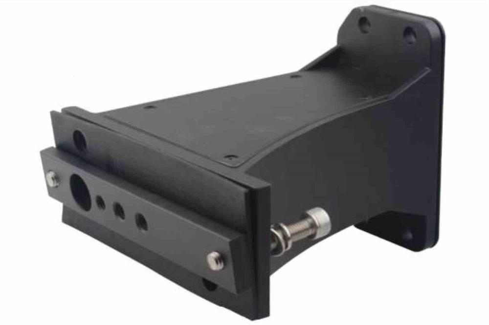 | Square pole mount for GAU-LTL-400W-LED fixtures. This mount allows mounting the trunnion mount fixtures to the side of a square pole. The mount has a built in weatherproof cable gland to secure the wiring from the light while still allowing for adjustment of the light. Inside the mount includes a wiring junction box to make wiring connections from the light whip to the wiring run inside the light pole. Cover for the junction box is bolted on. A hole on the back side of the mount allows wiring run from inside the light pole to enter the junction box |