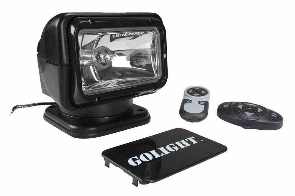 1.Weather Proof Lamp and Remote Control. 2. Remote Control Programmable with More than 60,000 Possible Channels. Remotes Can be Programmed to Control One Golight or Several 3. R.F. Frequency, F.C.C., S.A.E. tested and Canada Certified. 4.Remote Control Range up to 100 Feet. 5. Automotive Grade 12 Volt D.C. High Torque Motor. 6. Weatherproof Connectors Meet OEM Vehicle Manufacturer Specifications 7. Meets Marine Standards for Fresh Water and Saltwater Use. 8. 1,300 Lumens, 700 Foot Beam Length 9. 12 Volt DC 5.5 amps Draw.