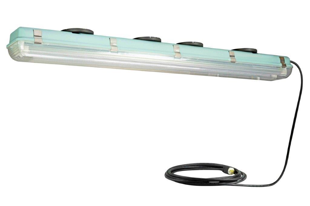 We now offer our second generation LED tube lamps with this fixture which have increased this hazardous location light`s performance. This three lamp HAZLOC LED linear fixture is lighter in weight and produces more light than hazardous location fluorescent fixtures. The four foot long LED tube design bulbs included with this unit are rated at 50,000 hours of service life, which is over twice as long as standard T8 bulbs.