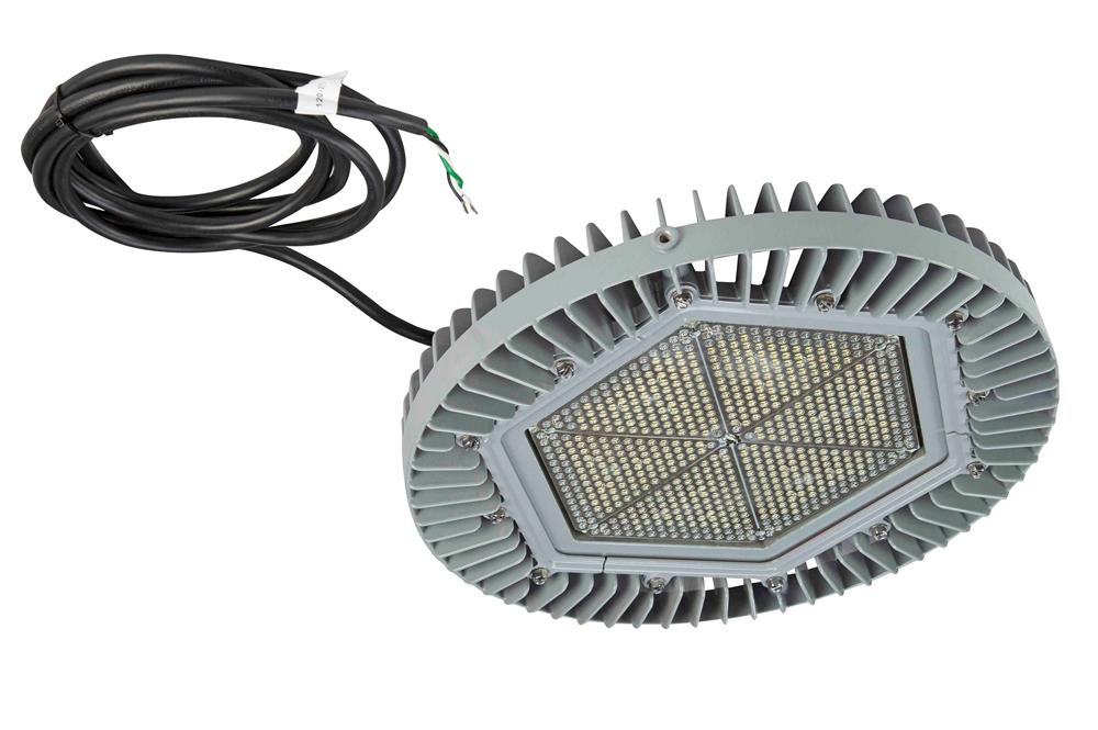 | The HAL-HB-144W-LED-PND High Bay pendant mounted light fixture provides operators with a powerful and energy efficient alternative to traditional hazardous location luminaries. LED technology and compact design makes this lamp an excellent replacement upgrade option for bulky and high maintenance cost older fixtures. This hazardous location light fixture provides 18,000 lumens of high quality light while drawing only 144 watts. The copper free aluminum alloy body is powder coated for added durability and an attractive aesthetic appearance. Special heat dissipating design in conjunction with LED technology helps this fixture to achieve an excellent 60,000 hour rated lifespan with 80% lumen retention. Light weight and a low profile make this unit an attractive alternative to larger and heavier older fixtures and requires less hardware to install. Class 1 & 2 Division 2 listed, this hazardous area LED fixture is approved for use in areas where combustible fumes or dusts may exist.  | ||||