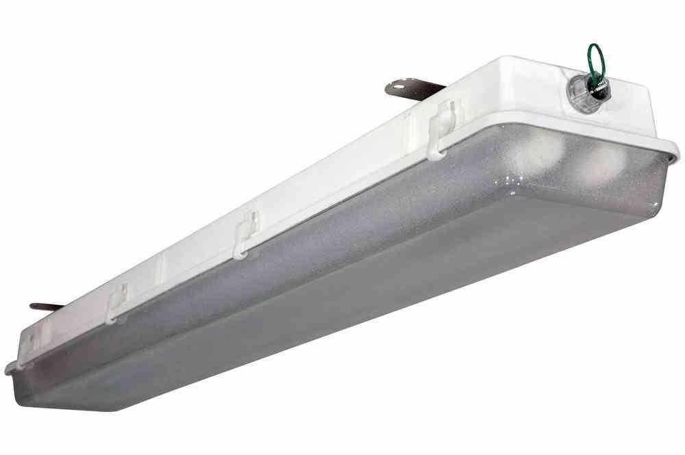 1. Each unit dielectrically tested. 2. Fixture arrives assembled and lamped to reduce installation time and cost. Flange type stainless steel mounts attached at each end of the fixture enables it to be simply secured to any surface. 3. Fixture housing constructed of glass fiber reinforced polyester. 4. No ballast box.  No ballast to replace.  We simply run the black wire to one end of the bulb and white wire to the other. 5. Relamping done via 8 plastic locking latches which enables the operator to remove the door and access the lamps. 6. Lamp cover-diffuser constructed of high impact acrylic for corrosion resistance and lamp protection. 7. 1/2" or 3/4" threaded access hole for wiring conduit.       1. 50,000 hour lifespan. 2. Can SAVE 50% or more on energy. 3. Qualifies retrofit projects for financial incentives, including utility rebates, tax credits and energy loan programs. 4. Reduces energy use and prolongs life-spans of peripheral cooling units (A/C, refrigeration) 5. 100% recyclable. 6. No toxins-lead, mercury. 7. No UV light, infrared radiation or CO2 emissions. 8. Qualifies buildings for LEED and other sustainable business certifications. 9. Bright, even light maintains consistent color over time. 10. Instant on/off - No flickering, delays or buzzing. 11. Very good color rendering. 12. Vibration/impact resistant. 13. Significantly cooler operation. 14. Less frequent outages, higher output improves workplace safety.