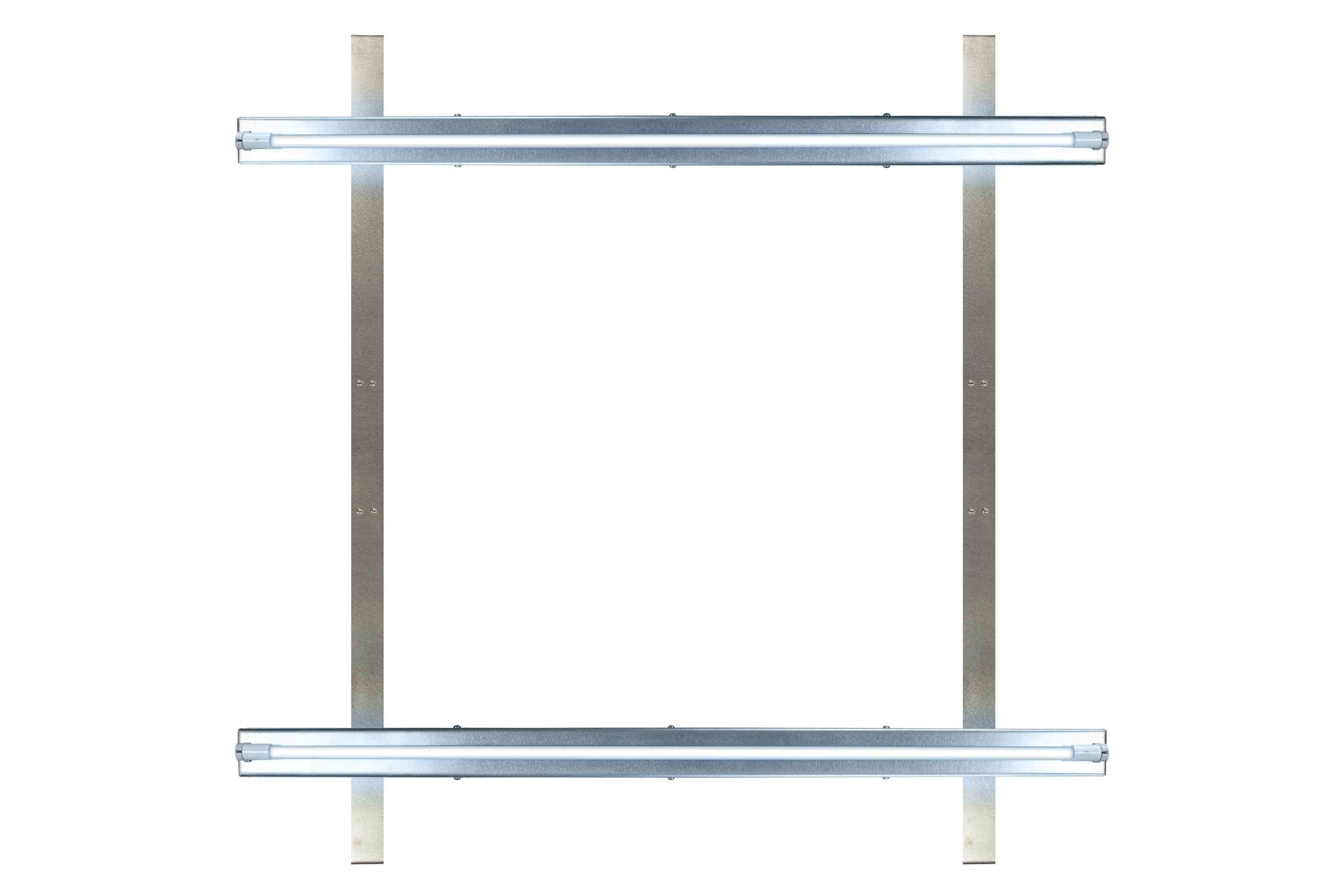 Equipped with two, 18" double-ended T8 UVC fluorescent lamps, this system offers 10.6 watts (5.3 per lamp) of UV output within the 200nm - 280nm UV-C range (254 nm). The lights have an expected lifespan of 8,000+ hours and emit a flood beam pattern. The included power supply features an indicator light with an L-bracket for installation with the ballast. One UV warning label is available for installation outside of the HVAC system (extra stickers can be purchased at an additional cost). We offer optional vertical support kits for vertical lamp installations, as well as an optional UV shield for protection from UV rays and viewing port.
