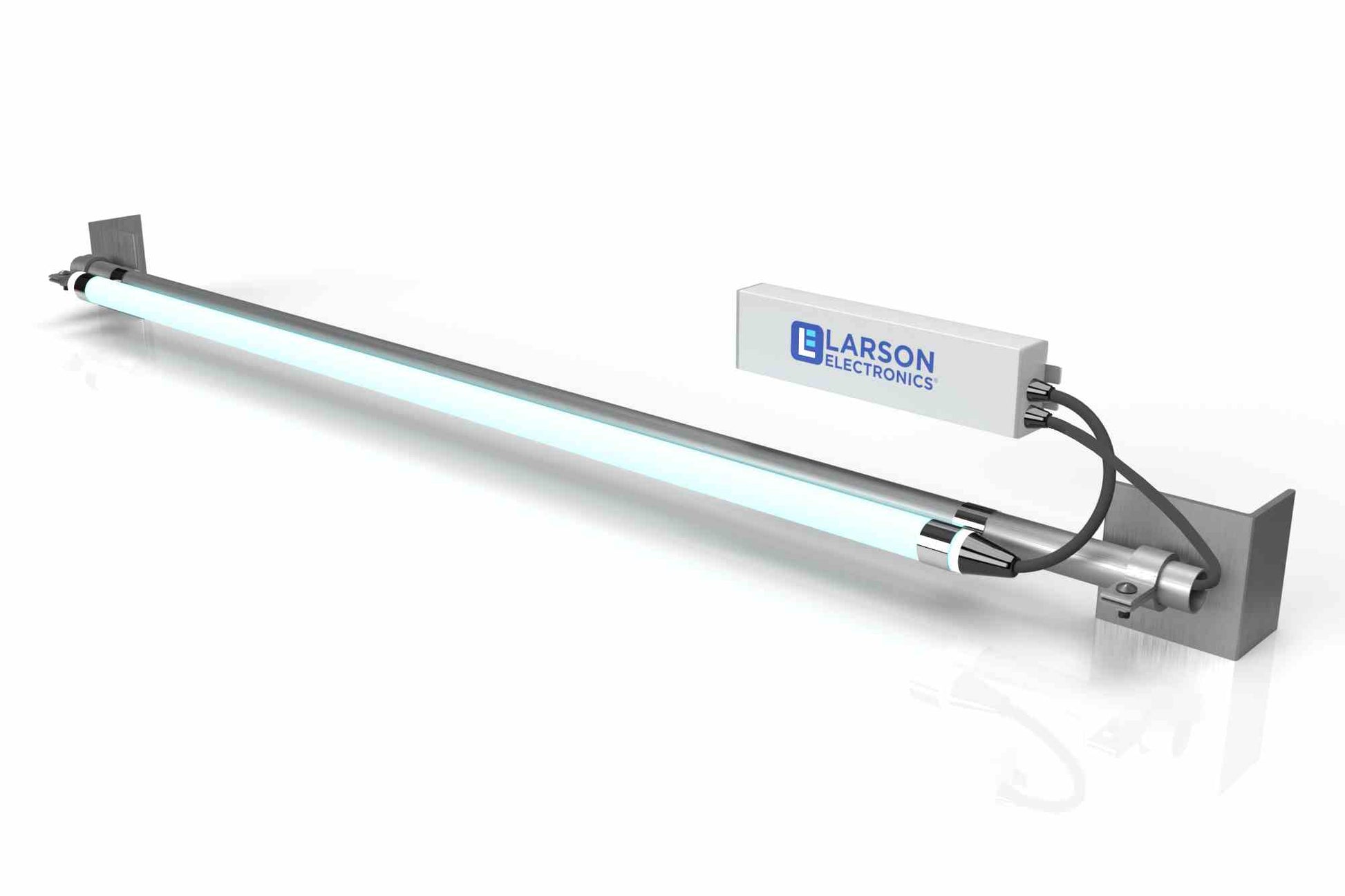 The IND-HVAC-ACS-R1-DE-48-1L-XB AC Coil Sanitation Bolt-in Kit from Larson Electronics prevents bacterial and unwanted growth in AC condenser coils. AC cleaning is facilitated by one 120W 48" T8HO UV lamp. Mounting hardware, UV warning sticker, and power supply are included with the kit.