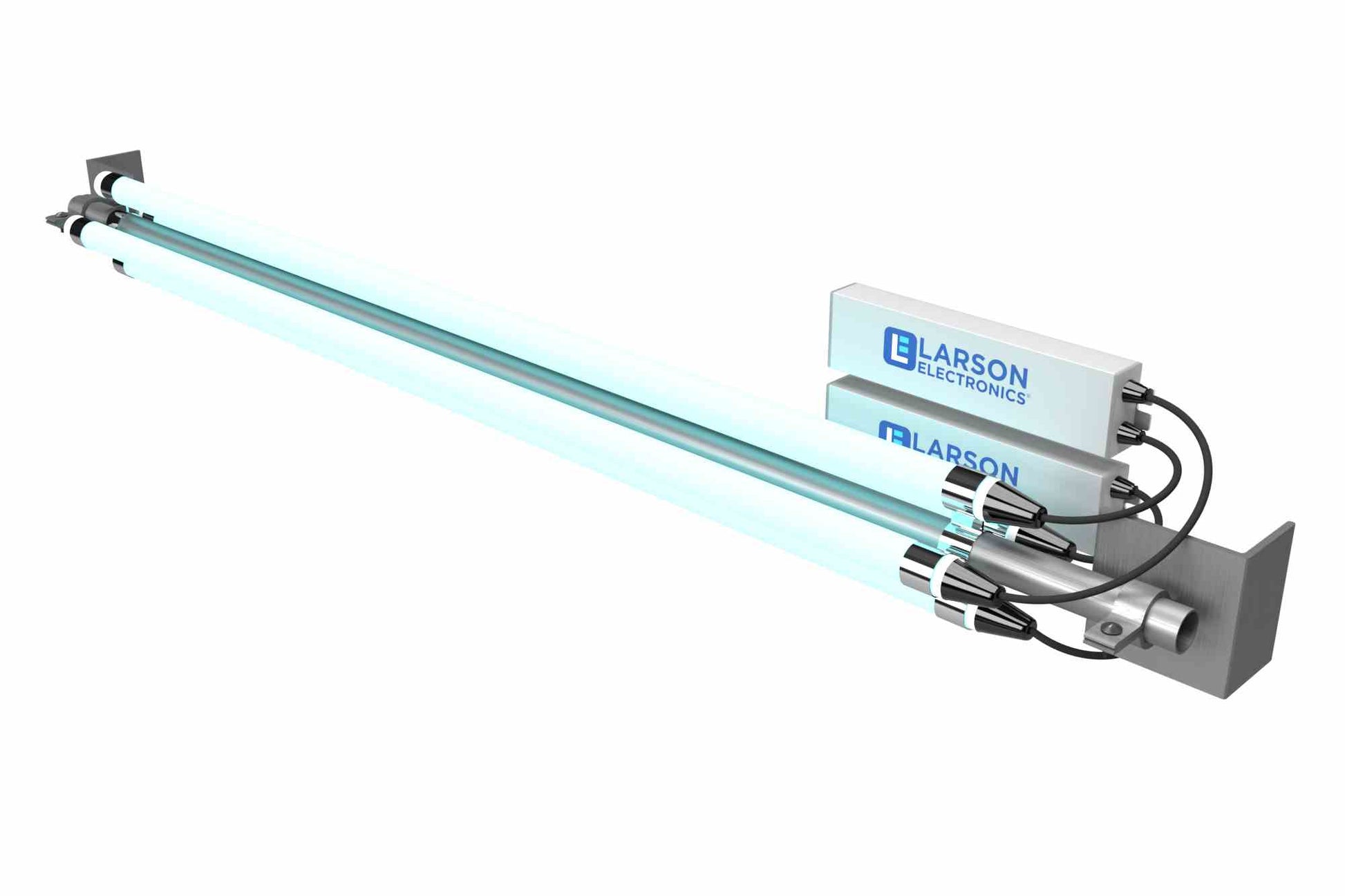 The IND-HVAC-ACT-R1-DE-48-4L-XB AC Coil Sanitation Bolt-in Kit from Larson Electronics prevents bacterial and unwanted growth in AC condenser coils. AC cleaning is facilitated by four double-ended 48" 120W T8HO UV lamps in an axial configuration. Mounting hardware, UV warning sticker and power supply are included with the kit.