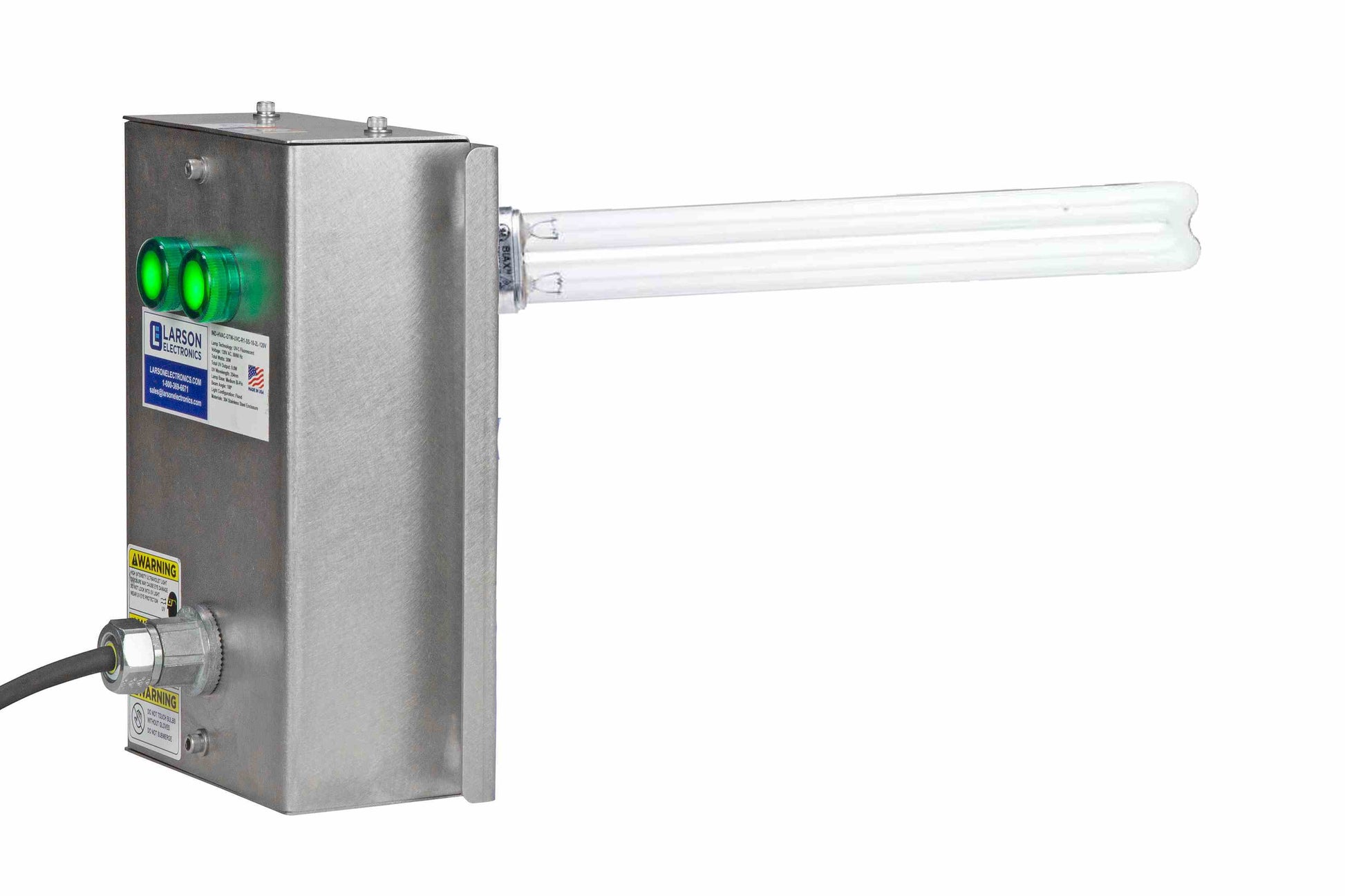 The IND-HVAC-DTE-FUVC-EXT-R1-SS-40W-1L-120V from Larson Electronics is an Air Duct Disinfection System that works to disinfect air moving through a duct system via germicidal far ultraviolet (Far UV-C) rays. This unit helps to control the spread of airborne cold and flu viruses, as well as other airborne transmitted disease. The anodized aluminum air duct disinfection system features one biax fluorescent UV bulb that produces 40 uW/cm2 of Far UV-C intensity at a wavelength of 222nm. The IND-HVAC-DTE-FUVC-EXT-R1-SS-40W-1L-120V is designed to be mounted inside an air duct and operates on 120 V AC current.