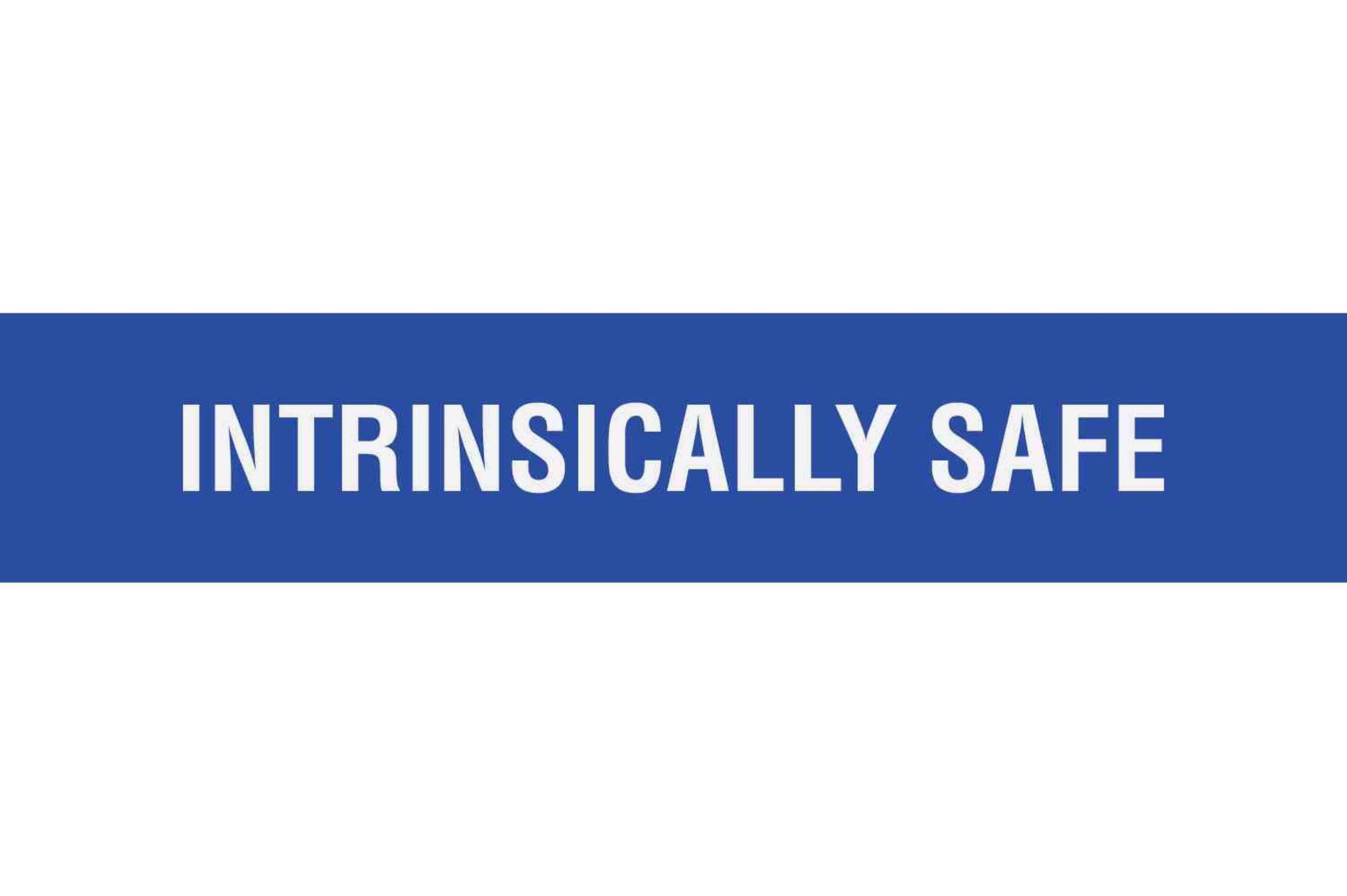 Larson Adhesive Equipment Label - INTRINSICALLY SAFE - White Text w/ Blue Background - 30MM x 90MM