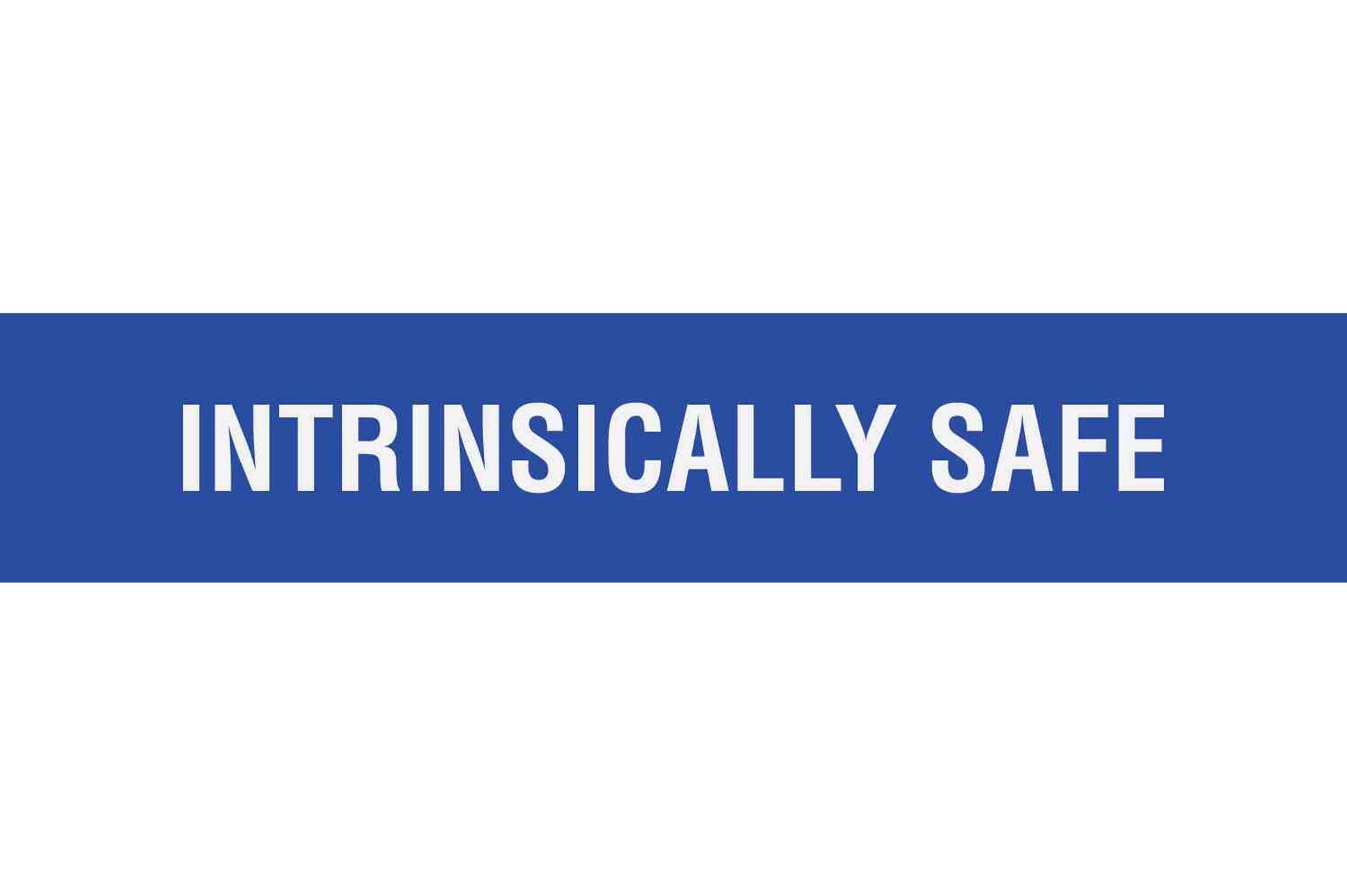 Larson Adhesive Equipment Label - INTRINSICALLY SAFE - White Text w/ Blue Background - 50MM x 80MM