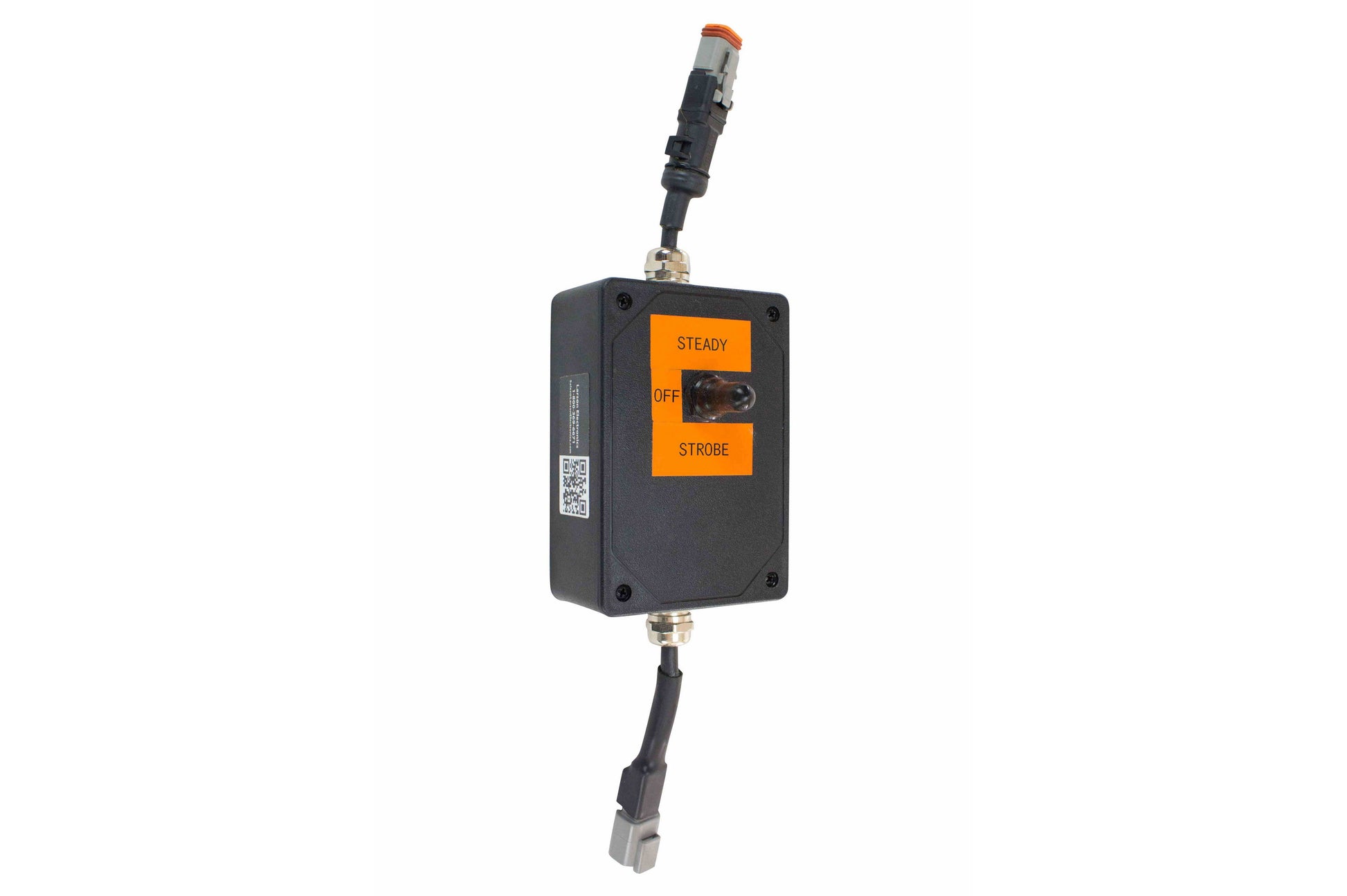 The control box features a 3 position toggle switch, for on, off and beaconing mode. Thus, an LED strobe light can be used for continuous on or flashing mode with a toggle switch change.
