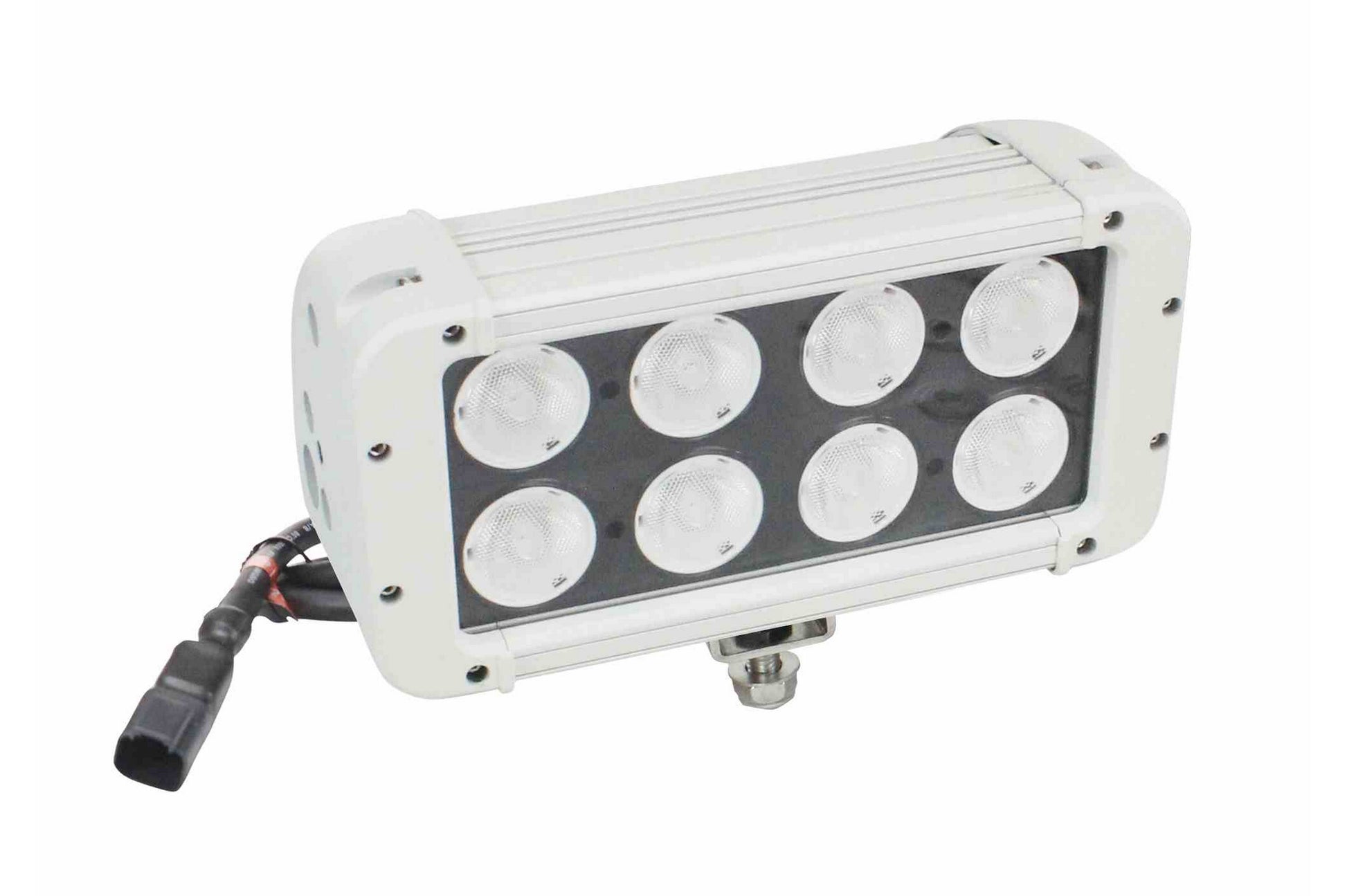 The LEDPB10W-80X2E LED light bar from Larson Electronics produces 6,880 lumens of bright light while drawing only 80 watts @6.7 amps from a 12 volt electrical system. Eight CREE XLamp MC-E ten watt LEDs producing 860 lumens each are arranged in two rows and paired with high purity optics to produce a 20 degree spread spot beam approximately 750` long by 70’ in width. We also offer floodlight versions with a 40 degree beam spread to provide more light over a larger area nearer the fixture, making flood versions ideal for use as spreader and area lights. These LED light bars are waterproof to 3 meters, sealed against intrusion by dust and dirt and very ruggedly constructed to withstand the demanding conditions found in marine environments. to see how using LED Boat Lights on the water can increase safety.