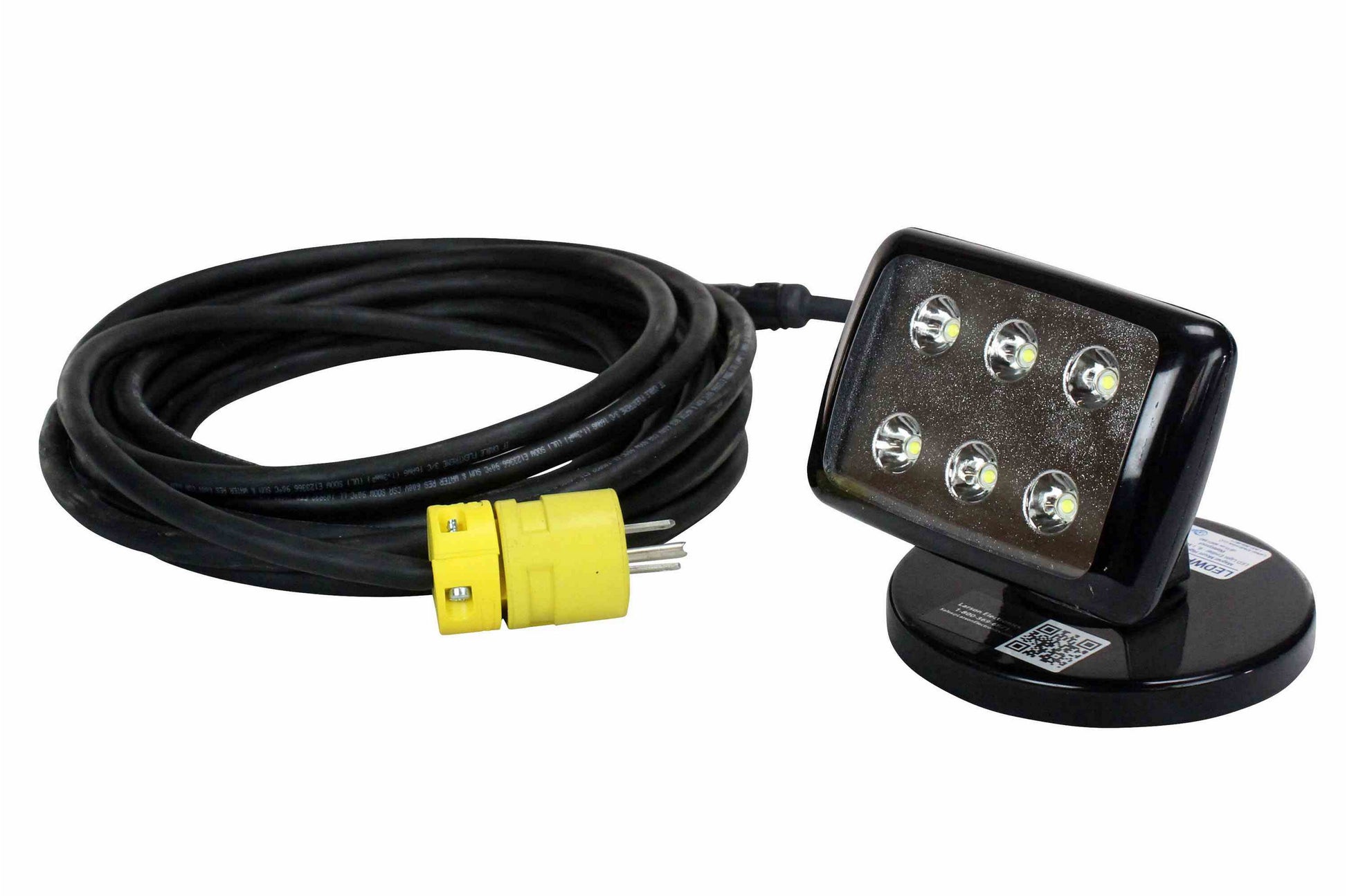 The LEDWP-50-M-10C LED 6 watt magnetic mount wall pack light from Larson Electronics produces a light beam that is well spread without any of the irregularities or dark spot associated with typical halogen lighting. The beam from this compact LED fixture will illuminate an area nearly twice the distance as a standard 50W halogen flood light, but is 30% narrower than a standard halogen floodlight.  This compact LED light produces far more light than traditional incandescent lamps yet uses far less power.