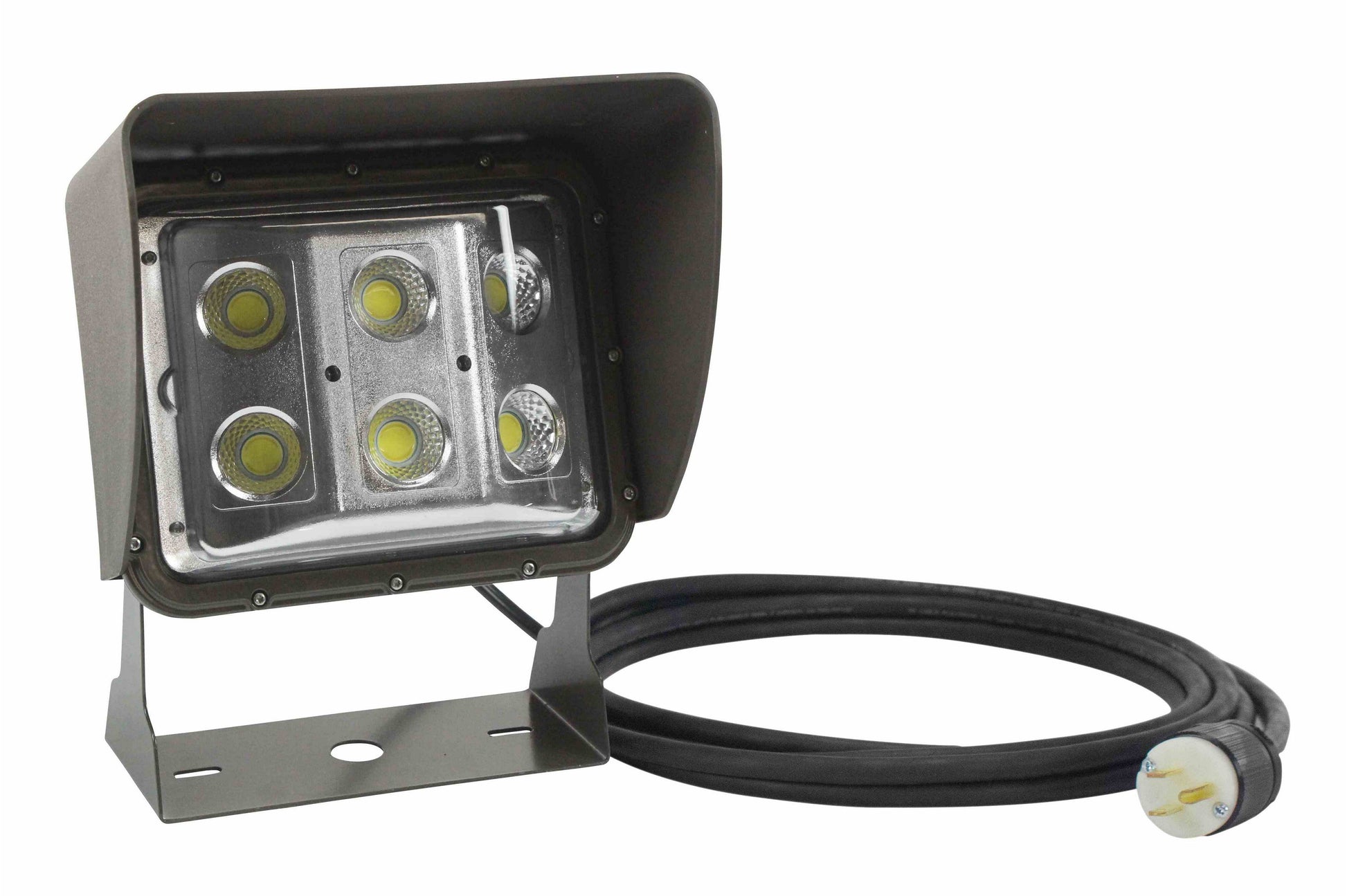 This magnetic mount LED flood lighting system is equipped with 25` of 16/3 chemical and abrasion resistant SOOW cord that is fitted with an industrial grade cord cap for easy connection to common wall outlets. Plug options include standard 5-15 15 amp straight blade plug for 110V wall outlets with ground, standard 6-15 15 amp straight blade plug for 220-240V wall outlets with ground, NEMA L5-15 15 amp twist lock plug for 125V twist lock outlets, NEMA L6-15 15 amp twist lock plug for 240V twist lock outlets, British BS1363 13 amp fused 3-blade plug for United Kingdom outlets, or a two pin 16 amp rated Schuko plug with ground contact and socket for European outlets up to 250V. Alternatively, we can provide flying leads with no plug for hard wire applications or for operators who prefer to wire in user provided cord caps. Please choose pigtail option below for flying leads with no plug.
