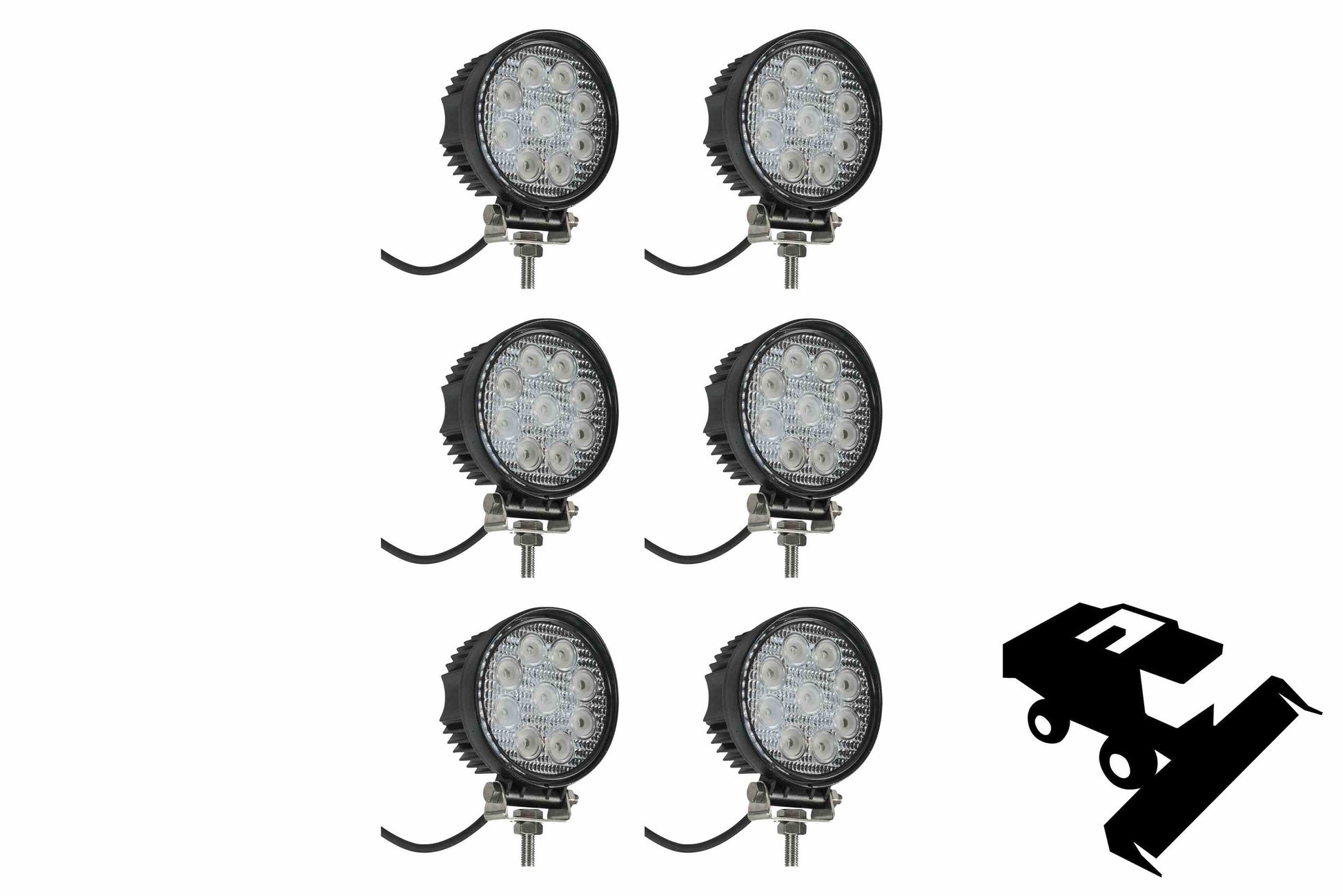 27 watt LED flood lights. These six LED lights are used to replace existing headlights.