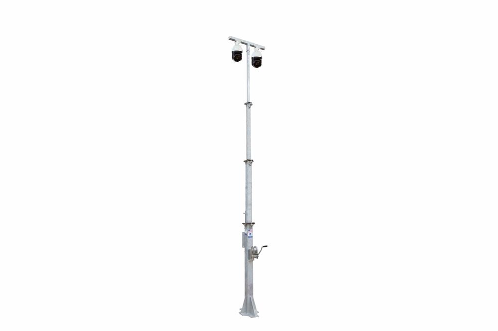 Made in the USA The LM-24-8-4S-FM-MODC-M11-EW-2XPTZ-R1 from Larson Electronics is an Outdoor Security Mast that provides a safe and effective way for operators to quickly deploy two cameras to elevations up to 24 feet. Capable of collapsing to 8 feet, the system features two IP security cameras with 25x zoom and long-range infrared LEDs for nighttime monitoring. The heavy-duty mast comes with an electric winch and a 12" x 10" foundational base at the bottom of the pole for support. *PLEASE NOTE: ANY FREE SHIPPING OFFERS DO NOT APPLY TO LIGHT MASTS OR LIGHT TOWERS* This telescoping four stage steel security mast from Larson Electronics is designed to allow operators to quickly and safely deploy two outdoor cameras in locations where this equipment must be elevated to heights up to 24` for effective coverage. Options for the mast finish includes: galvanized, powder coated blue or powder coated black. Camera Features: The security cameras provide operators with crisp 2560 x 1440 resolution images. A 4.8-120mm varifocal lens automatically adjusts focus, providing operators with precise 25x optical zoom levels. Integrated long-range IR LEDs, with a wavelength measurement of 850 nm, enable the day/night camera to see distances up to 492` under nighttime conditions. This unit offloads videos in MP4 format and features H.264, H.264+, H.265, and H.265+ video compression. The IP security cameras are designed to perform in outdoor locations and rainy conditions. This IP66-rated unit resists the negative effects of non-corrosive liquids. De-fogging features enable the unit to operate in rainy and foggy conditions. This device is capable of operating in temperatures between -22°F and 149°F. Wiring: The security cameras are designed to operate on 24V AC or PoE (IEEE802.3at). CAT5e network cables facilitate connections for the monitoring devices. Our cameras with Power over Ethernet (PoE) features enable data transfers and power to be passed through a single Ethernet cable that is usually a Cat 3/Cat 5 cable or better. There are several types of PoE, which come with their own respective standard and maximum power to port capabilities. The IEEE 802.3af PoE standard, with a voltage range of 44.0 - 57.0V, offers 15.4W of DC power for each port. The IEEE 802.3at PoE standard, with a voltage range of 50.0 – 57.0V, provides up to 30W of DC power per port, which is ideal for surveillance cameras, antennas and network access points. The IEEE 802.3bt PoE standard, with a voltage range of 50.0 – 57.0V, provides 60W of DC power for each port. In order to utilize PoE properly, the components, such as the receiving unit and sending device, must be PoE compliant. Security Tower: The mast can be extended to 24` for maximum area coverage and collapsed to 8` for applications where a smaller footprint is required. The four-stage tower is constructed of square steel tubing and does not fold over or rotate. The mast is extended to its full height using a 120V electric winch with 3/16" galvanized cable. A remote mount control box is available, which can be mounted to flat surfaces (such as the side of buildings). The LM series of towers are powder coated with glossy blue finish for corrosion resistance and aesthetics or galvanized for superior corrosion resistance. A standard T-mast head at the top of the tower holds the two security cameras and a NEMA 3R junction box. This box makes 120V and 24V available for equipment secured at the top of the mast. The LM family of telescoping towers feature a proprietary mast guidance system, which provides increased stability during high winds. When lowered to 8`, the mast can withstand winds up to 125 mph. The entire tower assembly is shipped via common freight carrier and when shipped measures approximately 8` long, 4` wide, 5` tall and weighs approximately 375 lbs. Larson Electronics can custom tailor these units to the customer`s requirements with longer sections and larger mounting plates. We also offer a choice of either the manual 1,000 lbs hand winch included standard or optional electric winch. Mounting: The LM-24-8-4S-FM-MODC-M11-EW-2XPTZ-R1 is offered with a 12" x 10" base at the bottom of the mast for robust support. This feature utilizes a wide foundational base at the bottom of the pole with two bolts at every corner (total of 8). A total of four vertical right-angle plates, located at every side of the square pole, provides additional support for the foundational base, ensuring it does not warp or bend. Applications: Security systems, remote surveillance, general locations, law enforcement, police, outdoor facilities, commercial establishments, monitoring, military, industrial sites and more.