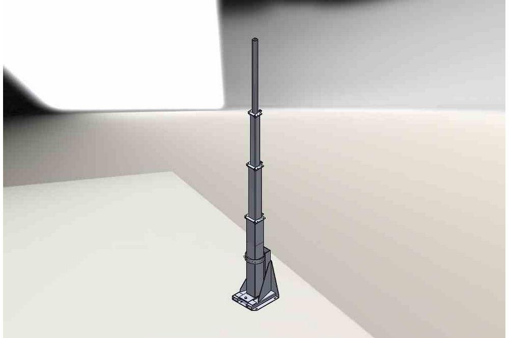 The Larson Electronics LM-40-9-8S-FM fixed mount 8-stage light mast provides a safe and effective way for operators to quickly deploy lights, security cameras and other equipment to elevations up to forty feet. Equipped with 2,500 lbs hand crank winches for manual deployment, this stationary light tower features a rotating boom that allows for 360° of rotation and a removable mast head for storing mounted equipment when not in use.  *PLEASE NOTE: ANY FREE SHIPPING OFFERS DO NOT APPLY TO LIGHT MASTS OR LIGHT TOWERS* This telescoping eight stage steel light mast from Larson Electronics’ is designed to allow operators to quickly and safely deploy lighting, cameras and other electrical equipment in locations where such equipment must be elevated to heights up to 40` for effective coverage. The light boom can be extended to 21` for maximum area coverage and collapsed to 9.1` for applications where a smaller footprint is required. The mast is elevated using an included 2,500 lbs manual hand crank winch with 3/16" galvanized steel cable. The tower is constructed of square steel tubing with a lower section 6.18` in length and 10" by 10" by 3/8" thick, second section 6.27` in length and 8" by 8" by 3/8" thick, third section 6.45` in length and 6" by 6" by 3/8" thick, and an upper section 8.45` in length and 4" by 4" by 1/2" thick. Each section has 2` of overlap.