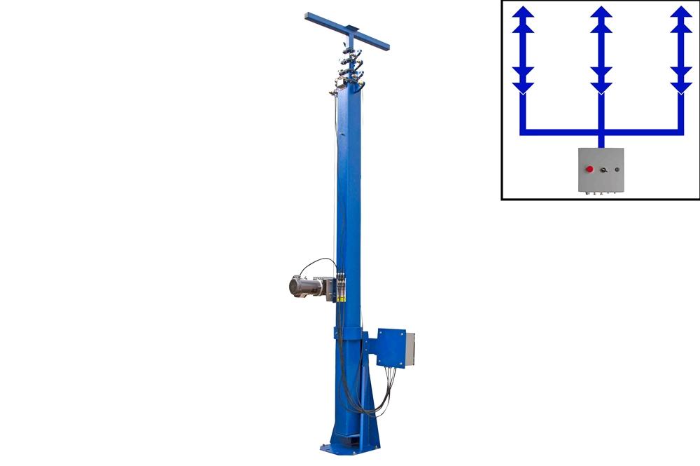Syncing Telescoping Light Mast - 13.5-50' 5 Stage Fixed Mount Light Tower - 360° Rotating Boom - (1) Electric Winch - 6" x 6" Top Mounting PlatePL3-LM-SYM-50-5S-FM-EW-6X6-M1