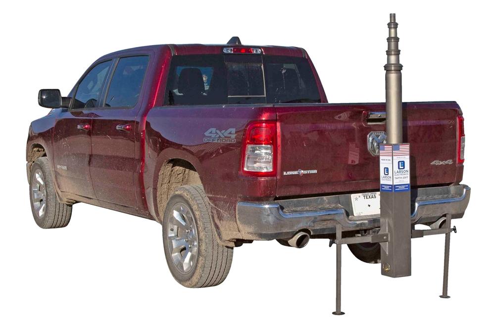 Made in Texas The TAPTH-20FT from Larson Electronics is a Trailer Hitch Mount Equipment Tower that allows operators to lift lights, speakers, cameras and other electronic equipment to heights of up to twenty feet. This four-stage trailer hitch mount tower is constructed from durable aluminum and extends from 7.6 feet to twenty feet while allowing for quick deployment of mounted equipment. When completely collapsed, the TAPTH-20FT will easily fit into the bed of most pickup trucks. The four-stage aluminum pole on the TAPTH-20FT can extend up to 20' and collapses down to 7.6' for storage, lower elevation of camera operation and transportation. The bottom stage of this unit measures 36.25" tall by 5" wide while the top stage has an inner diameter of 1". There is 10.75" of space between the center of the trailer hitch and the bottom of the tower's mast as well as 20.75" of ground clearance between the center of the trailer hitch and the ground. This trailer hitch mount tower is constructed of heavy-duty anodized aluminum. This unit seamlessly attaches to a standard size trailer hitch and raises to 20' without the need for any tools. The aluminum pole is lightweight without compromising strength to support mounted equipment and the trailer hitch mount is built for strength and flawless deployment even in difficult conditions. Mounting: The TAPTH-20FT offers a straightforward process for operators to deploy in the field. Upon arrival at the target location, the operator attaches the trailer hitch mount to the desired hitch. The hitch section can be adjusted using a T-handle for trucks and vehicles of different heights. Once it is firmly attached to the hitch mount, the collapsed aluminum pole is placed into the vertical structure of the trailer hitch mount and secured by tightening the T-handle. The operator then places the mounting plate with the attached equipment to the top of the 20` aluminum pole. Extension of the pole to maximum heights is also a simple process that doesn`t require any tools. The operator twists each stage of the pole to loosen the locking mechanism and uses a hand-over-hand motion to fully extend each stage before locking it into position. Lowering the pole uses the same procedure (in reverse). Suggested Applications: Depending on the equipment the operator chooses to mount on this trailer hitch mount equipment pole, the TAPTH-20FT is suitable for border patrol operations, security monitoring, law enforcement operations, military surveillance, covert operations and more. This unit may also be used to monitor outdoor events, large crowds, gatherings, chemical plants, food processing facilities, wastewater establishments, government sites, construction projects, remote operations, emergency camps and other large or industrial properties. Â |